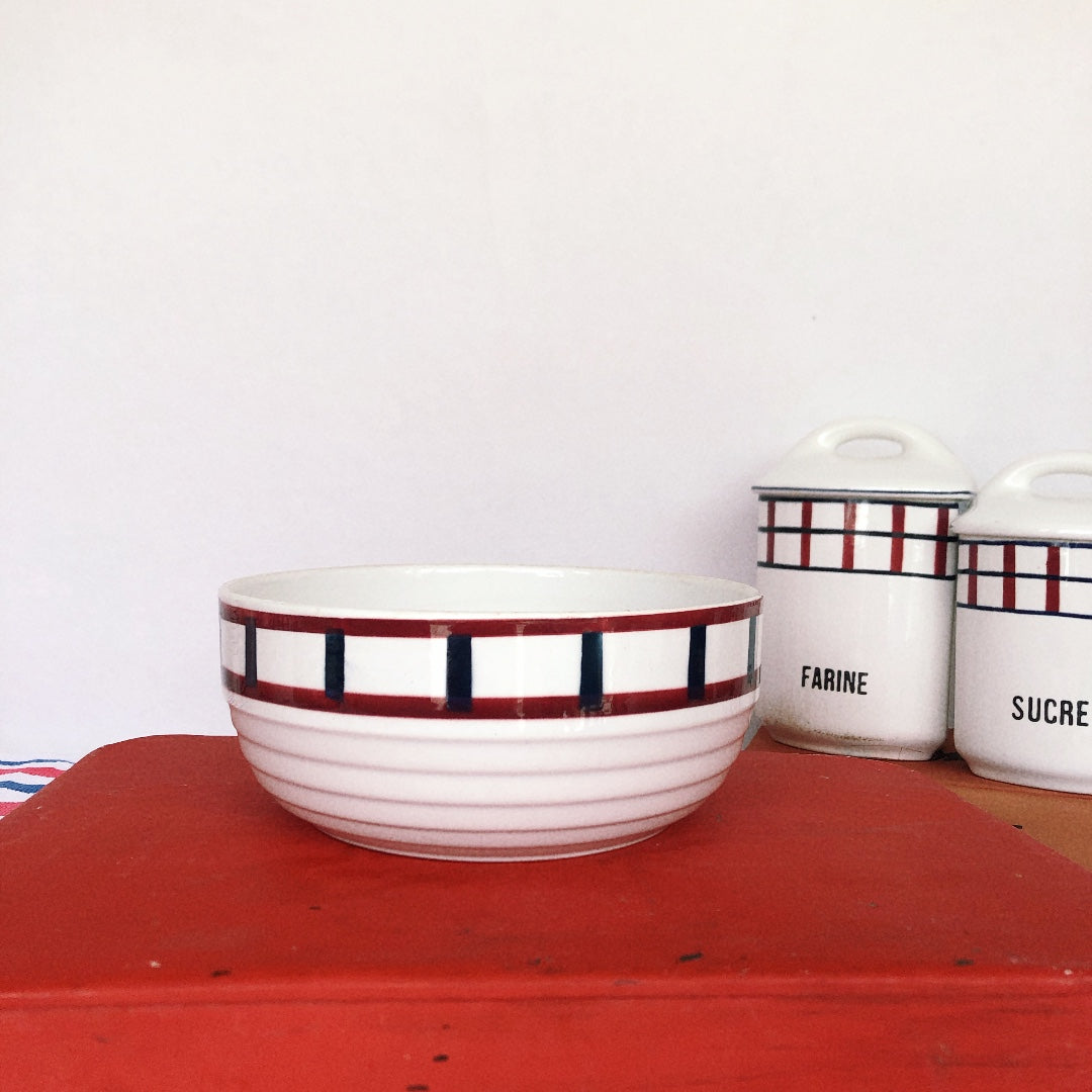 バドンヴィレー バスク柄 サラディエ サラダボウル「ルージュ・ブルー」フランスアンティーク・食器・皿・プレート ブロカント