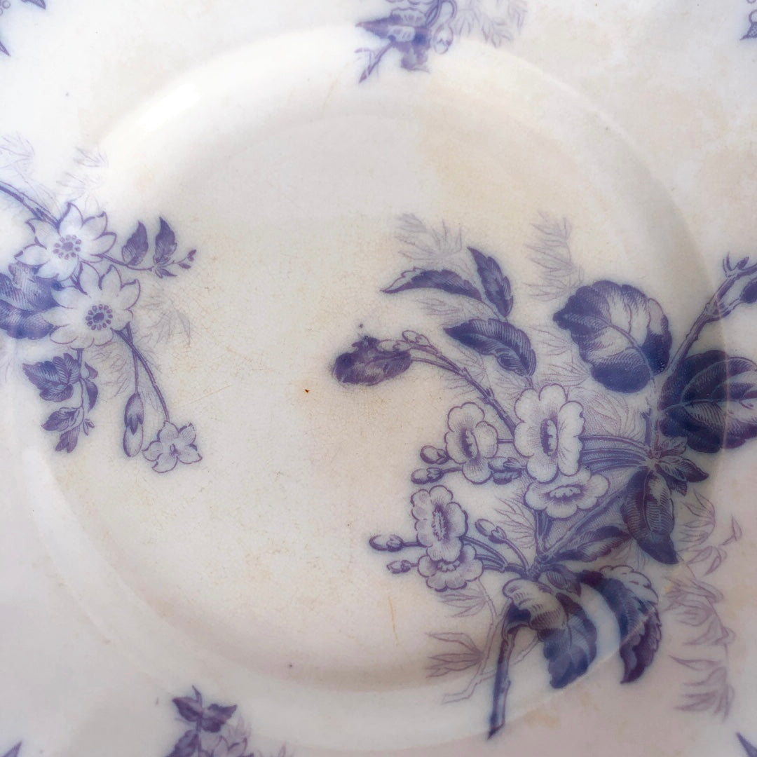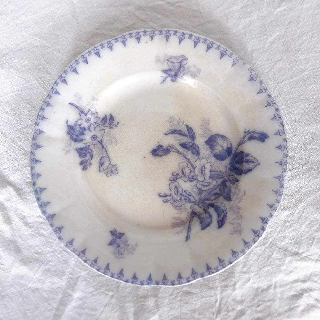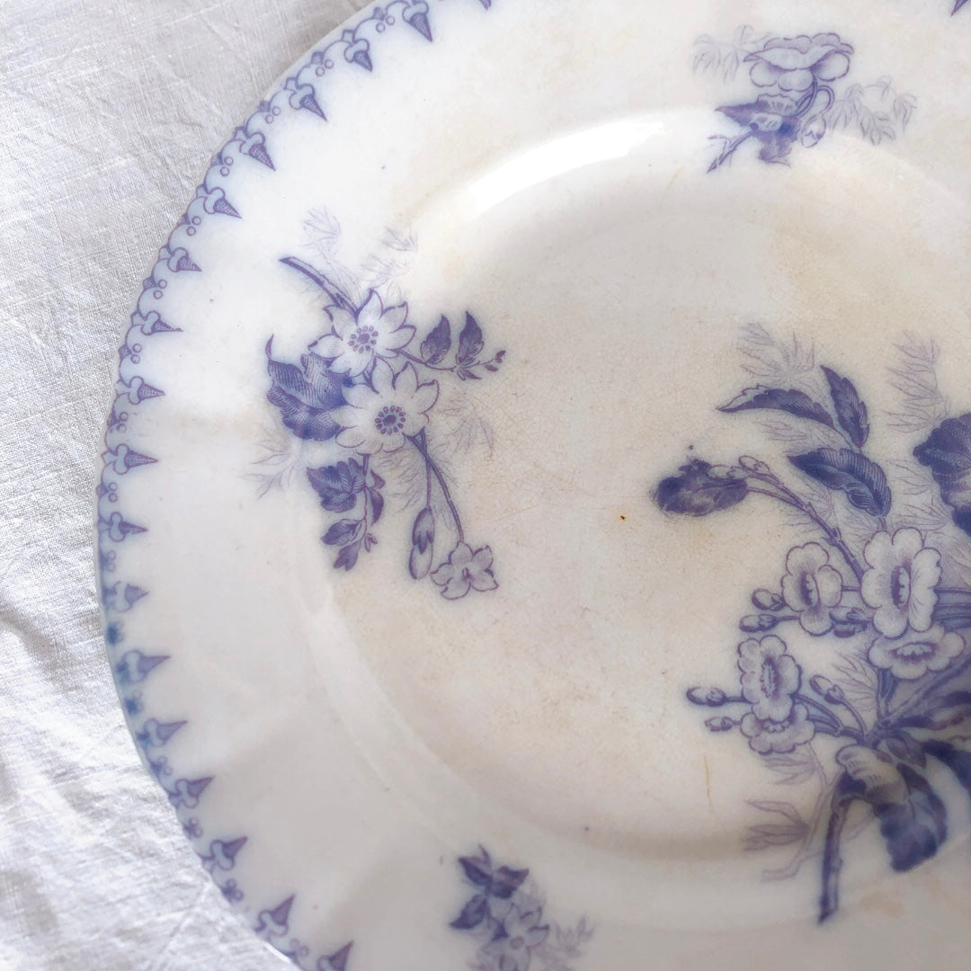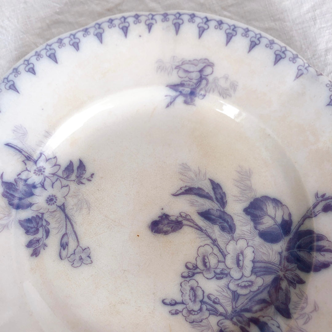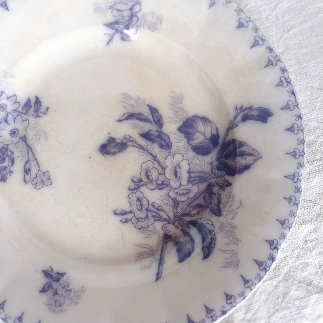 フランスアンティークプレート U&Cサルグミンヌ sarreguemines ”FLORE”フロール ラベンダー色 アンティーク食器 ブロカント 蚤の市