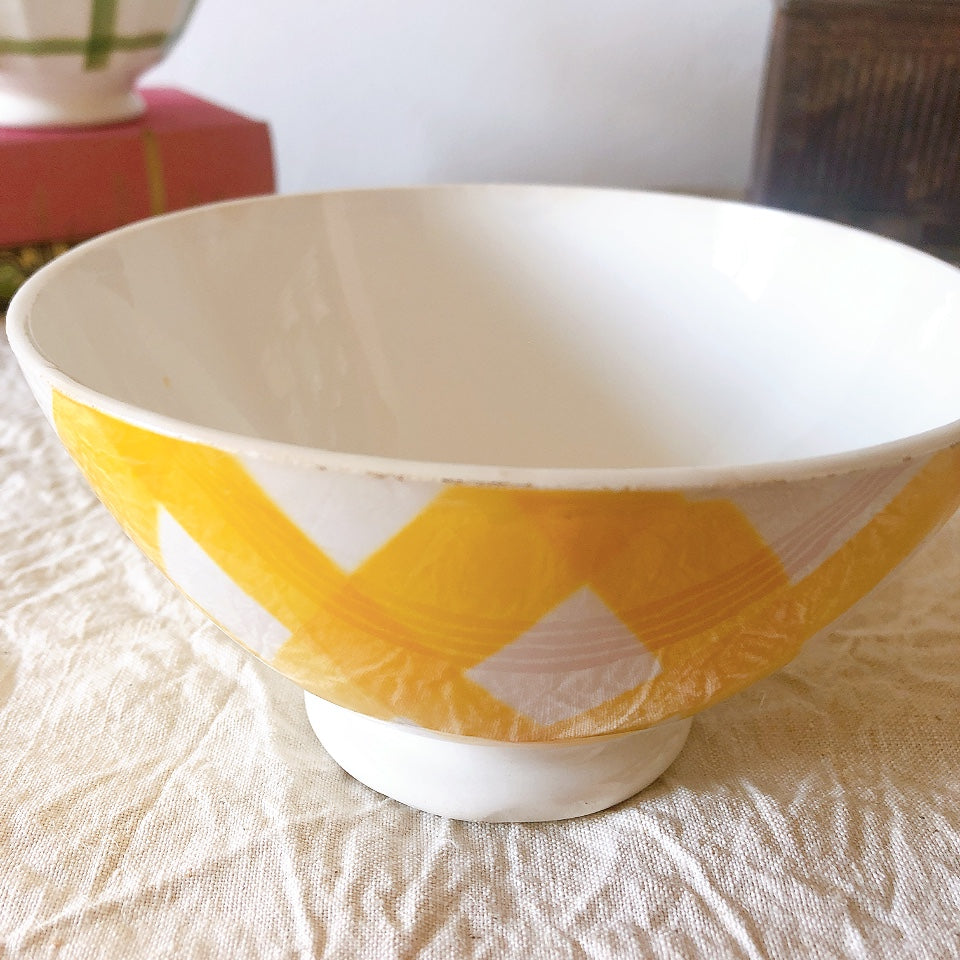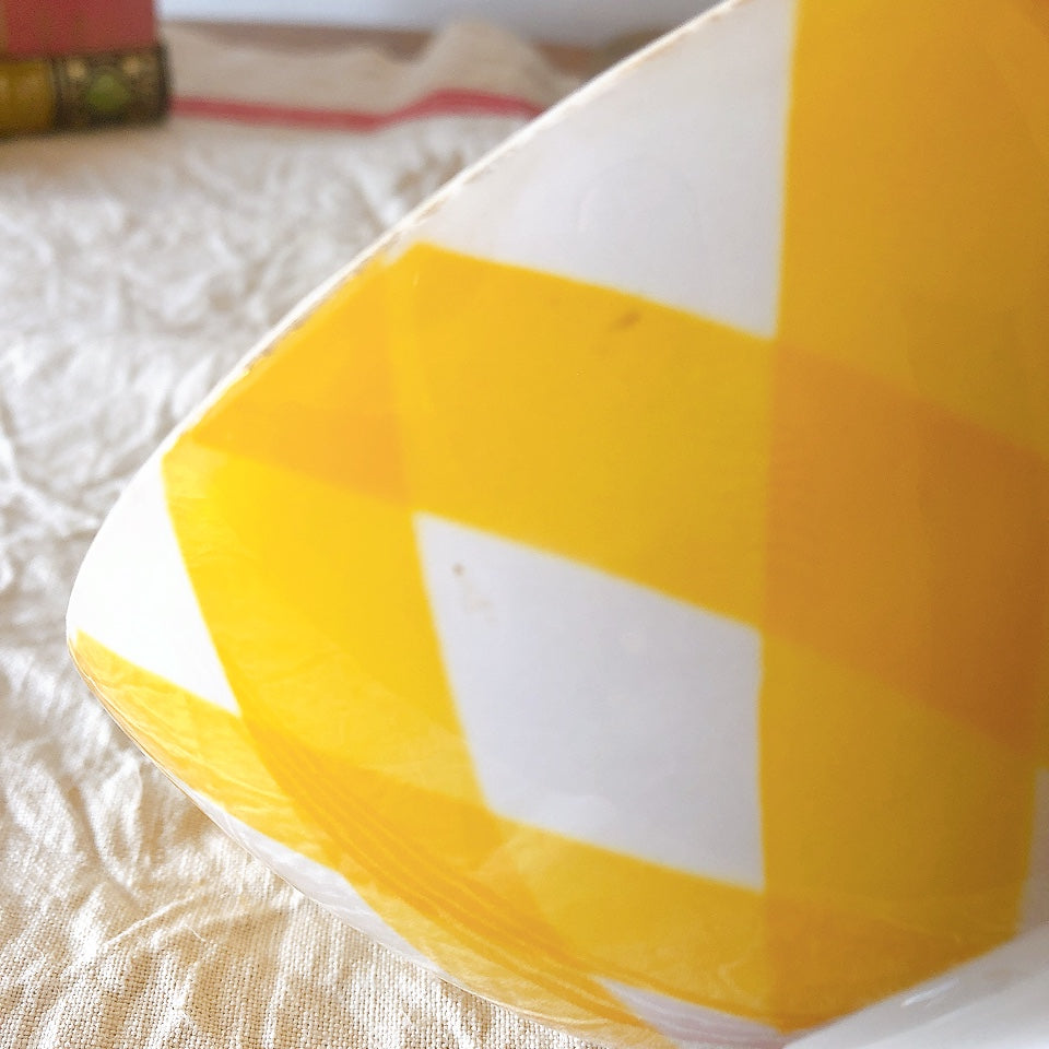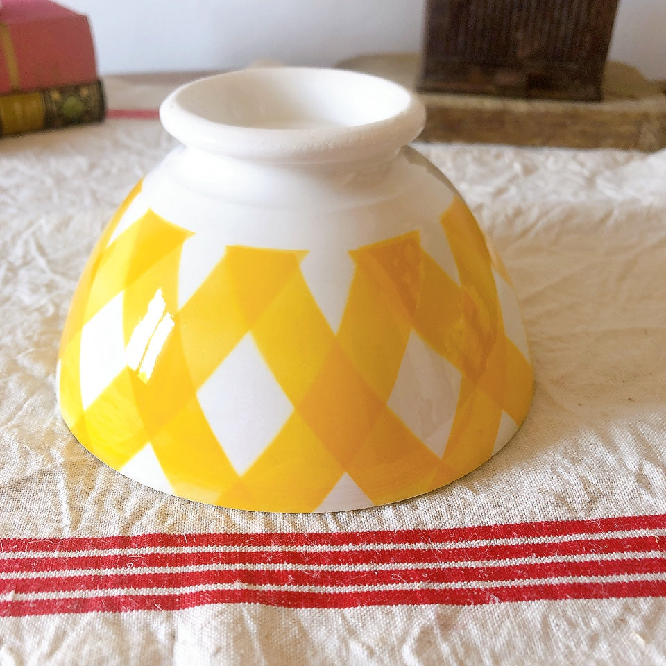 ディゴワンサルグミンヌ Digoin&sarregumines カフェオレボウル 黄色チェック フランスアンティーク/ビンテージ食器 ブロカント 蚤の市