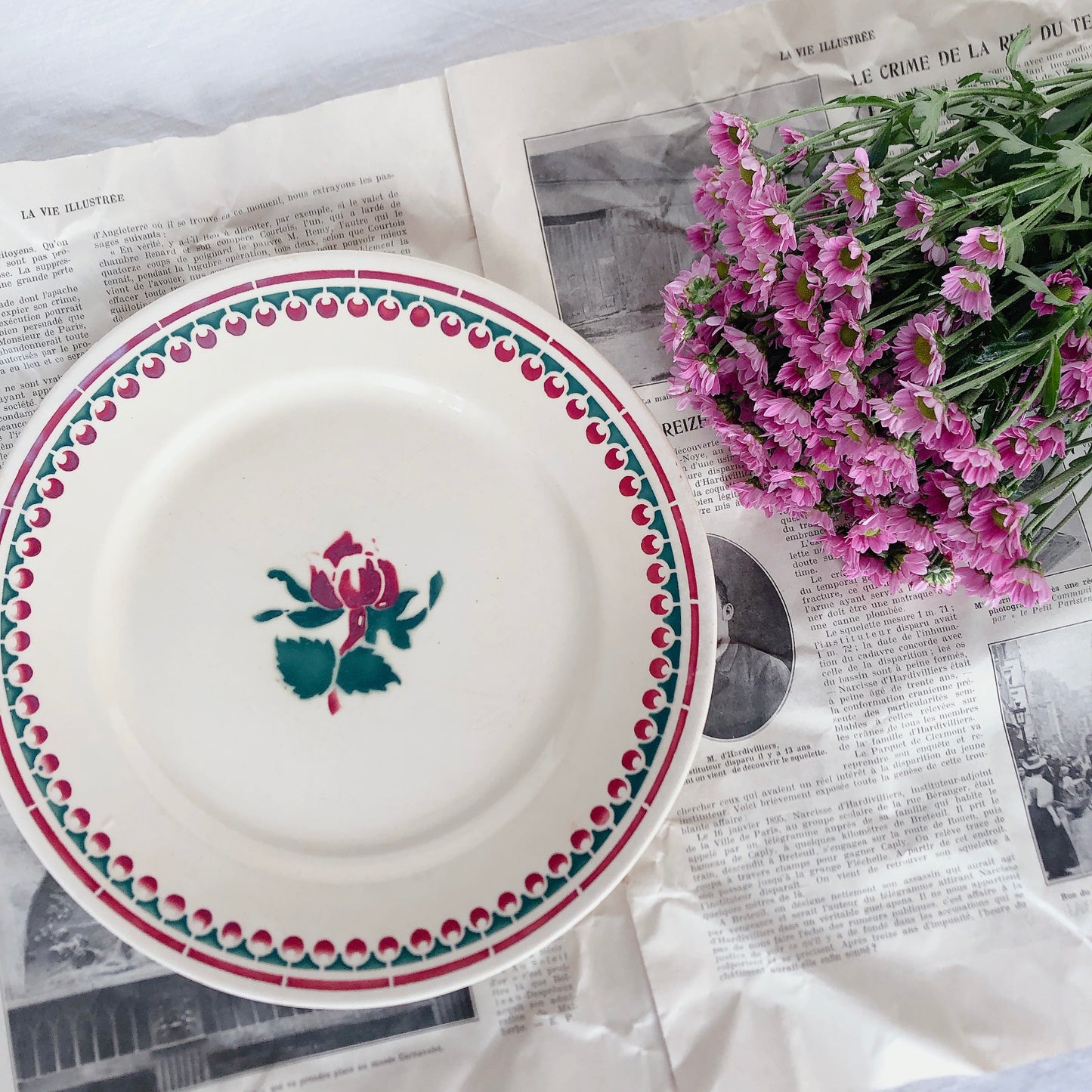 フランスを代表する窯、バドンヴィレーのバラがデザインされたプレート。