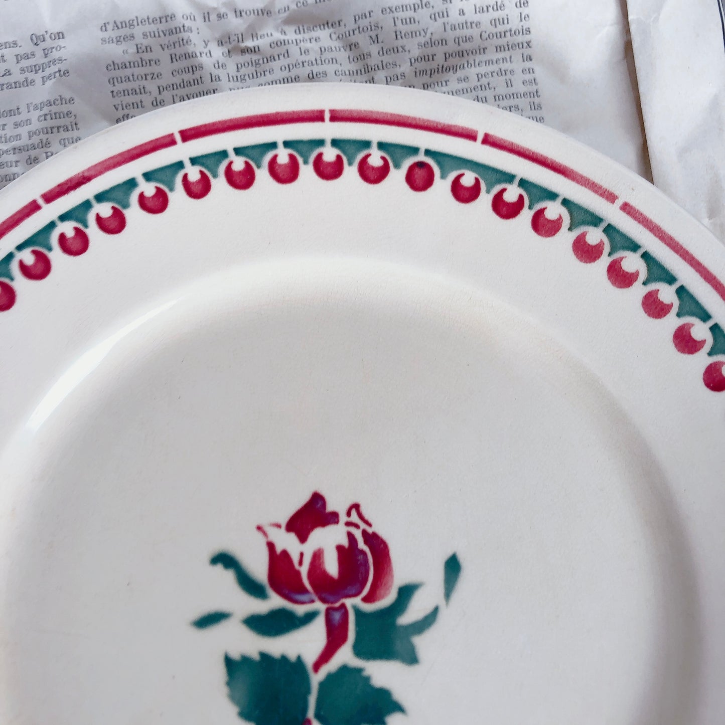 フランスを代表する窯、バドンヴィレーのバラがデザインされたプレート。