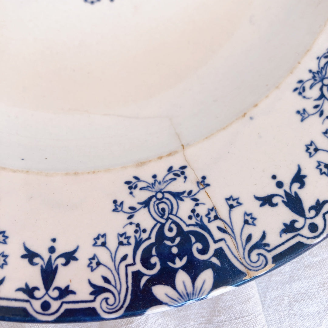ヴィエイヤーボルドー «Rouen»モデル スーププレート/深皿 フランスアンティーク食器 ブロカント 蚤の市
