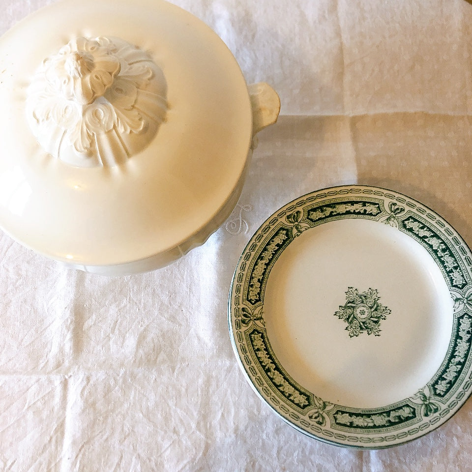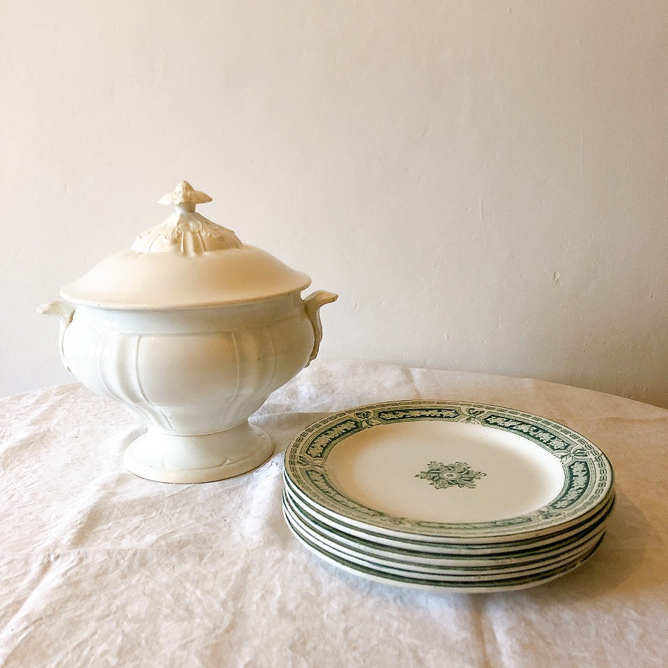 ブルジョワにこよなく愛された大変希少な逸品。グリーンカマイユ装飾。