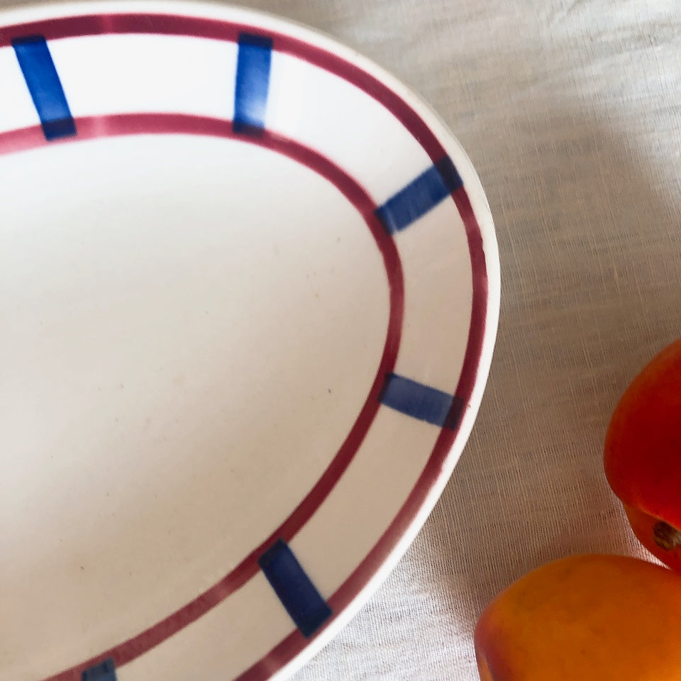 フランス ディゴワンサルグミンヌ Digoin&sarreguemines バスク柄ラヴィエ、前菜皿、オーバルプレートです。