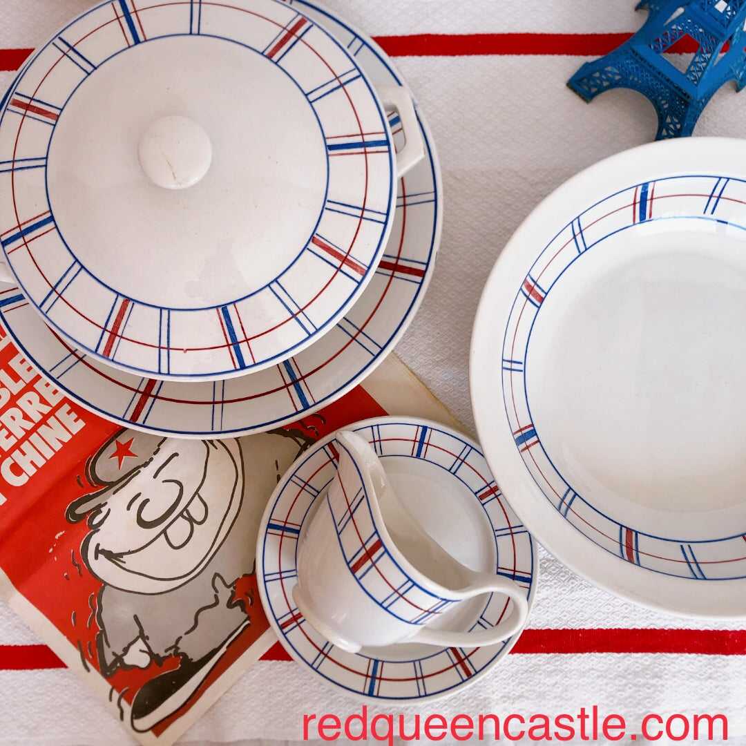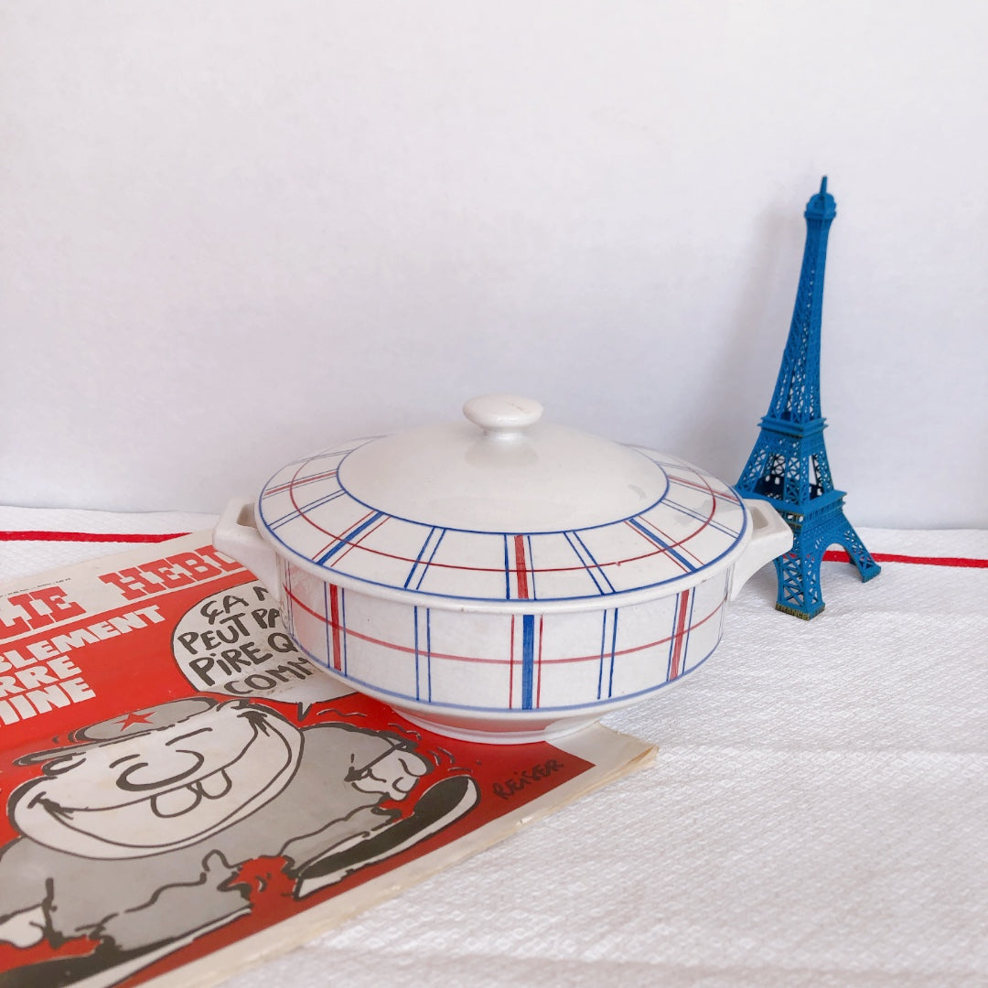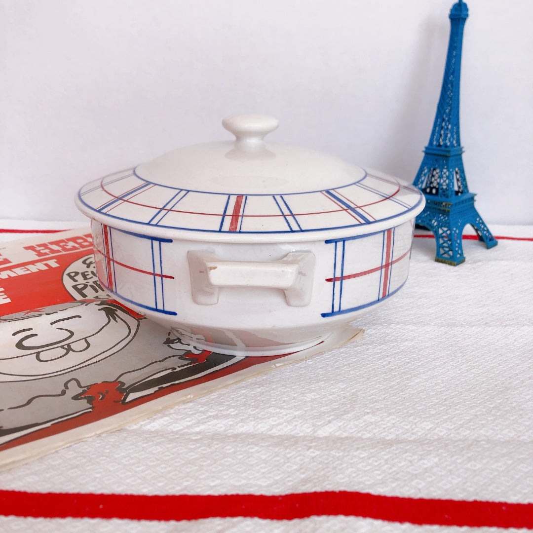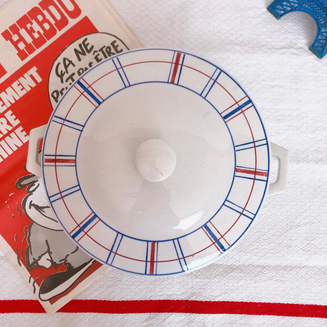 リュネビル バスク柄 『CALMEN』スーピエール トリコロールカラー フランスアンティーク食器 ブロカント 蚤の市