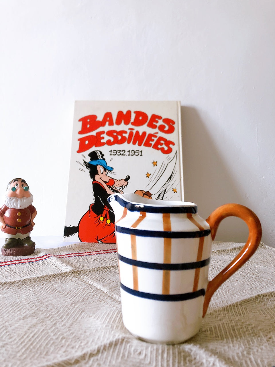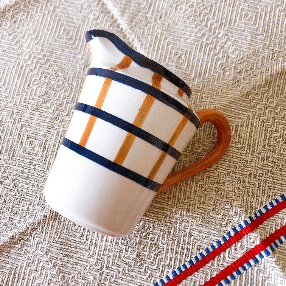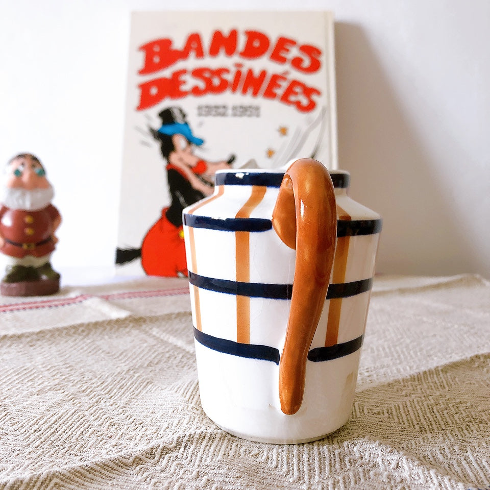 クレイユモントロー HBCM Béarn バスク柄 ミルクポット「マロン・ブルー」フランスアンティーク食器 ブロカントアンティーク