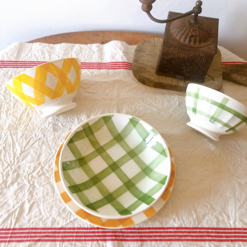 フランスアンティーク Luneville リュネヴィル カフェオレボール バンブーグリーン アンティーク食器 ヴィンテージカフェオレボウル