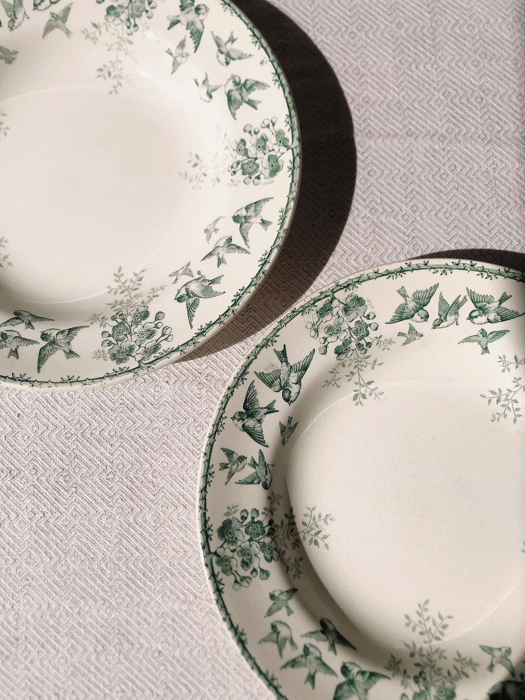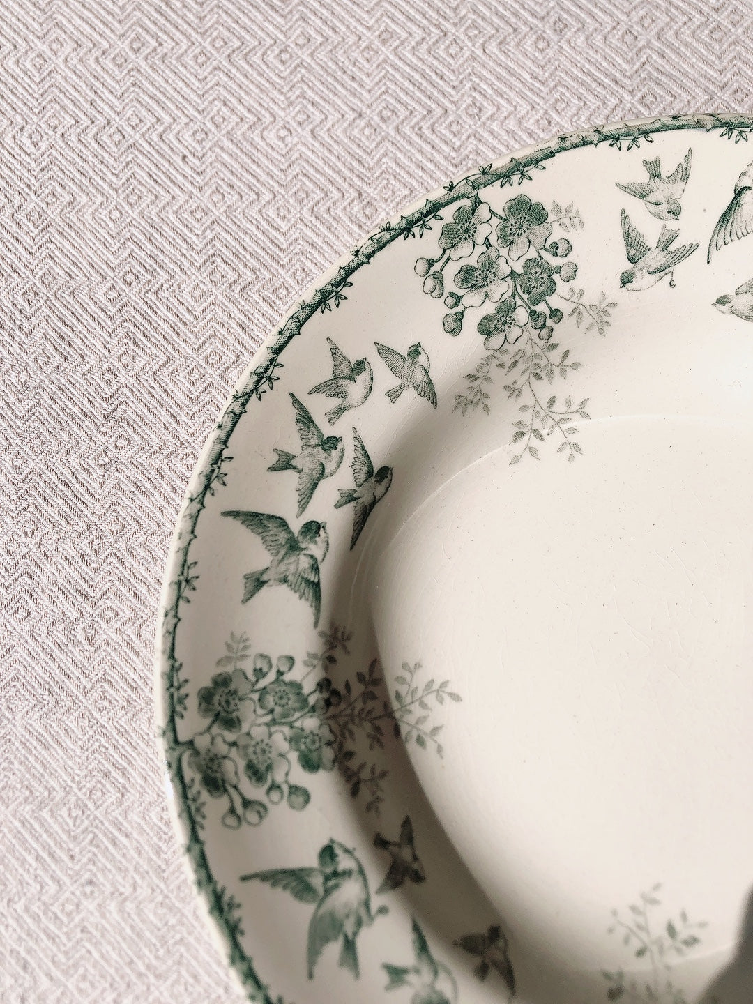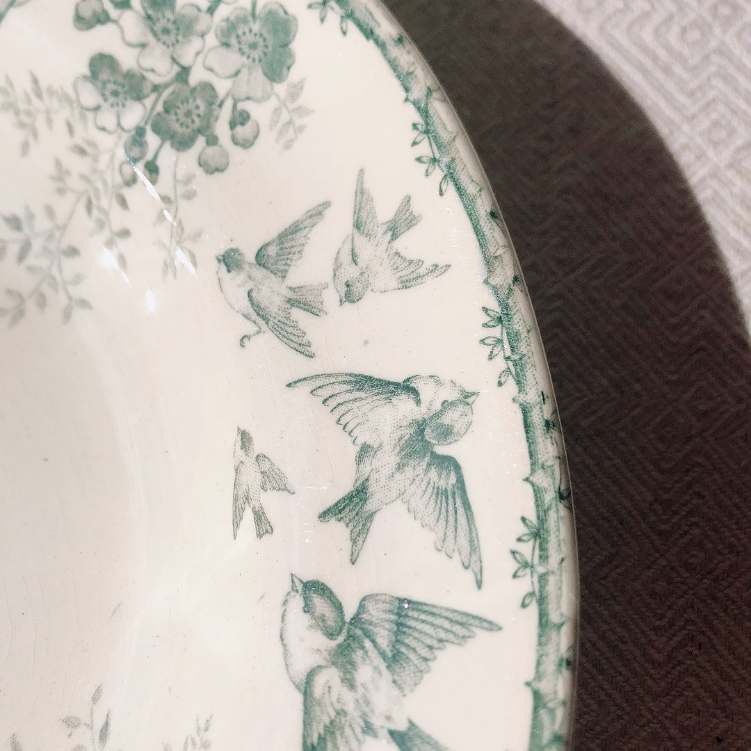 (ご予約済)ショワジー・ル・ロワ アンティークプレート 小鳥とワイルドローズ 深皿 23cm A フランスアンティーク食器・プレート フランス直送アンティーク