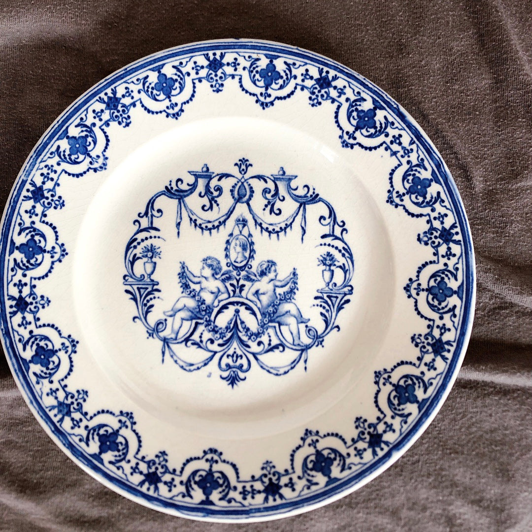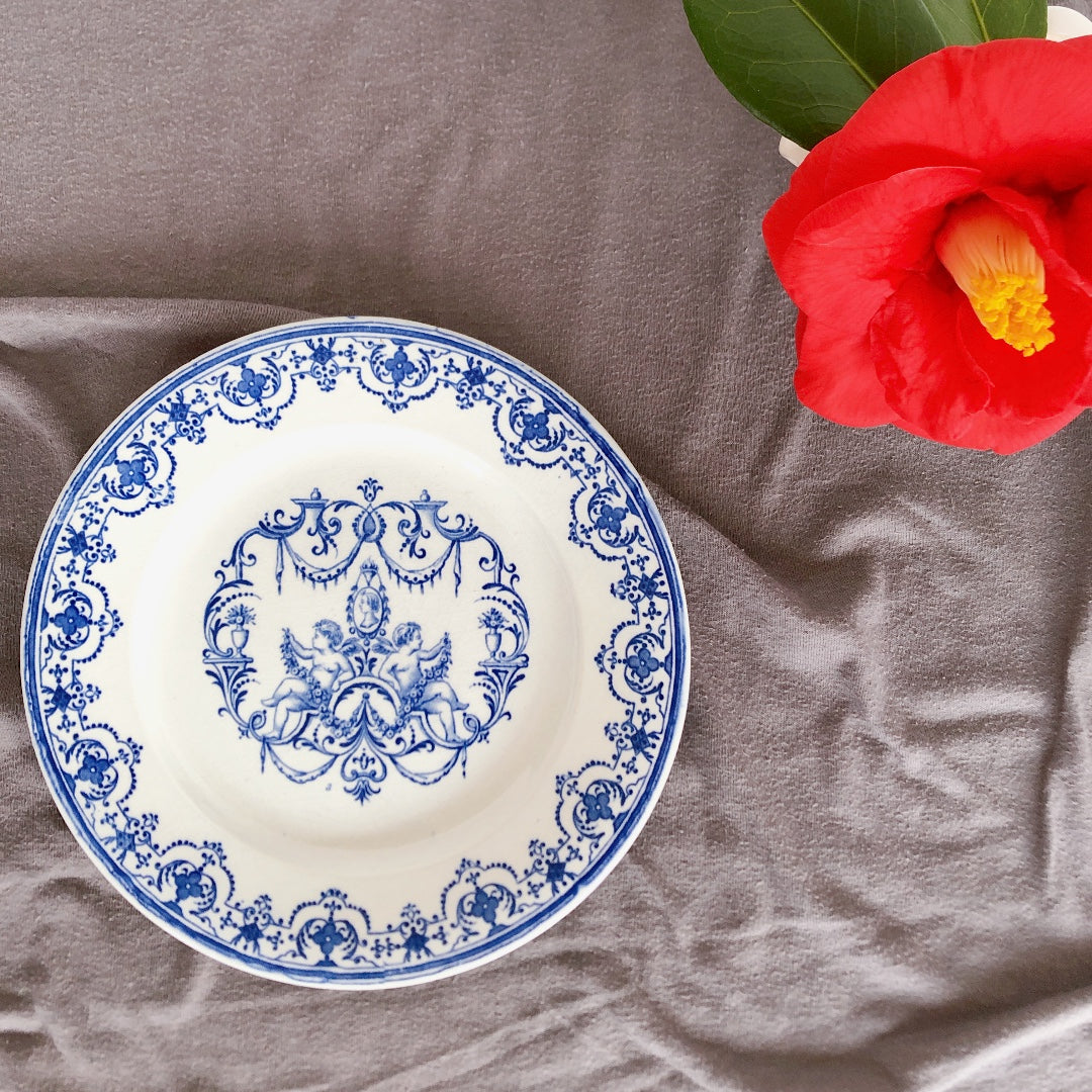 ヴィエイヤーボルドー ムスティエ デザートプレート E 天使 フランスアンティーク食器 フランスブロカント・蚤の市