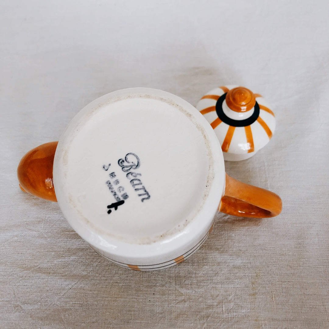 HBCM(Hippolyte Boulenger-Creil-Montereauクレイユエモントロー)窯製 Béarn モデルのバスク柄 コーヒーポットです。「イエロー・ダークブルー」
