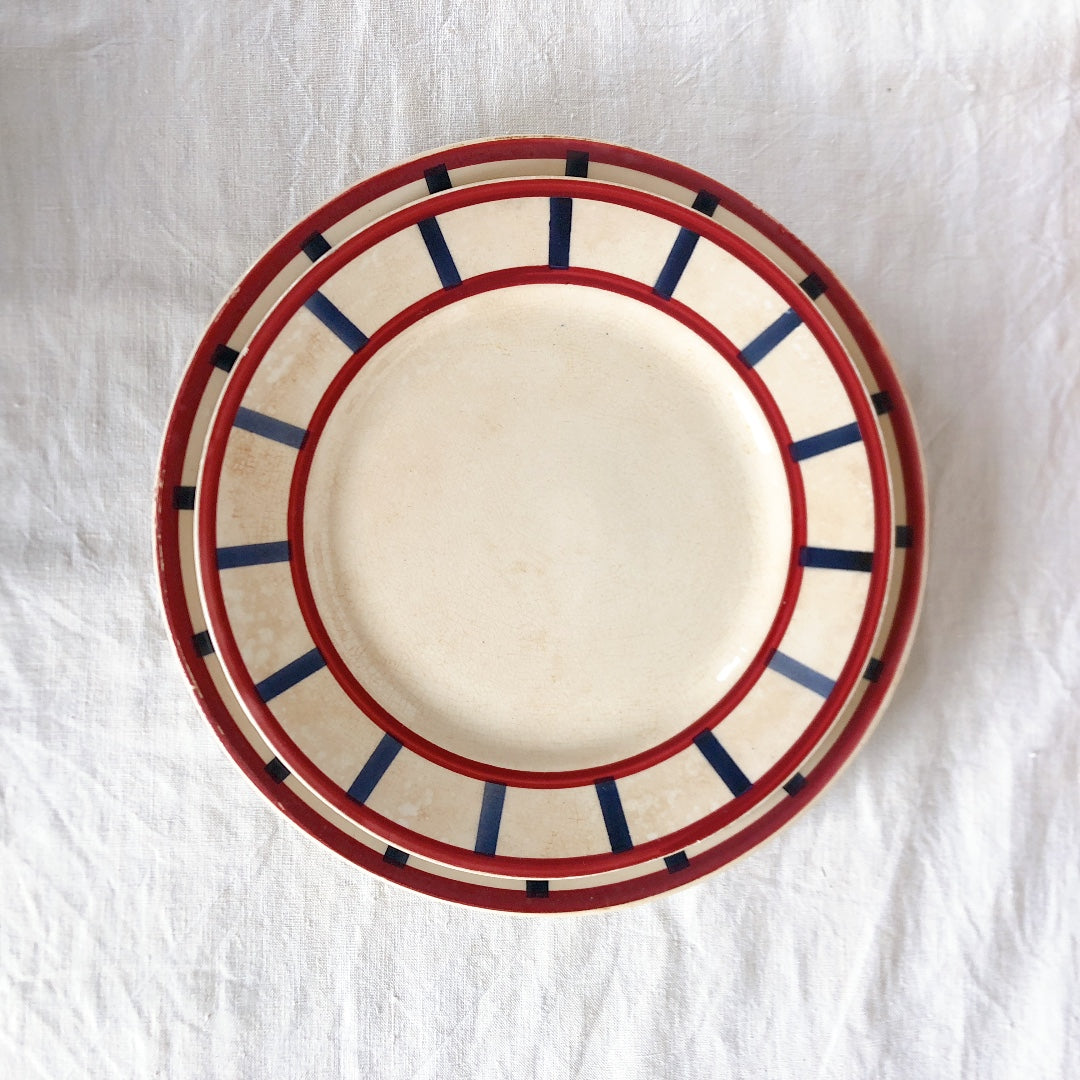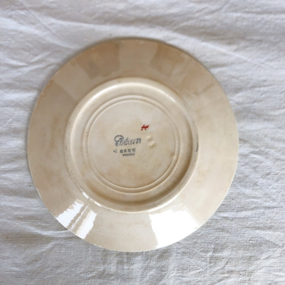 クレイユエモントロー HBCM Béarn デザートープレート/平皿 バスク柄 B「ボルドーxダークブルー」フランスアンティーク食器 ブロカント 蚤の市