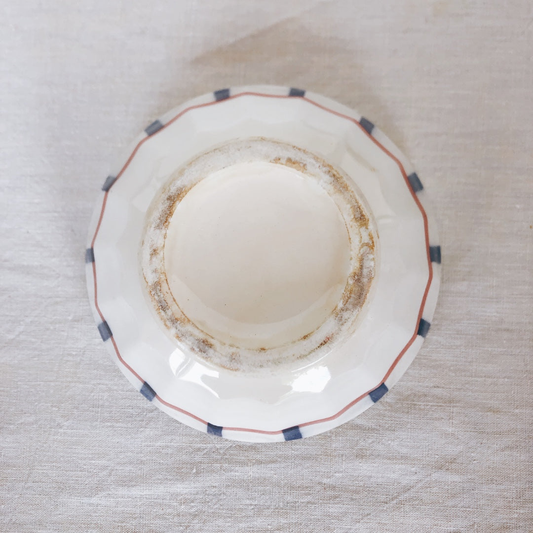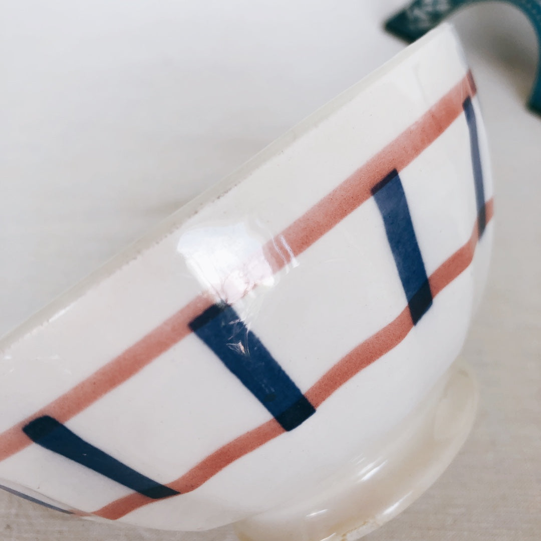 ご予約 バスク柄 カフェオレボール「レッドxブルー」A フランスアンティーク食器 ブロカント 蚤の市