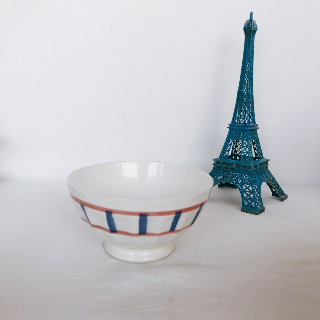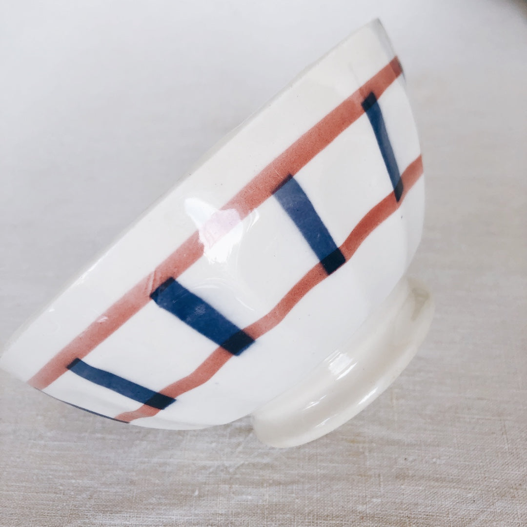 フランスアンティーク、バスク柄のカフェオレボールです。赤x青。