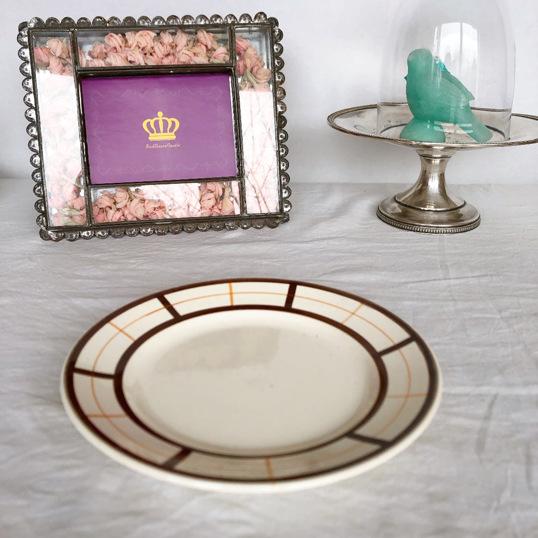 フランスアンティーク Longchamp ロンシャン YVONNE の平皿 A バスク柄 マロン✕オレンジ フランスアンティーク食器 ブロカント 蚤の市