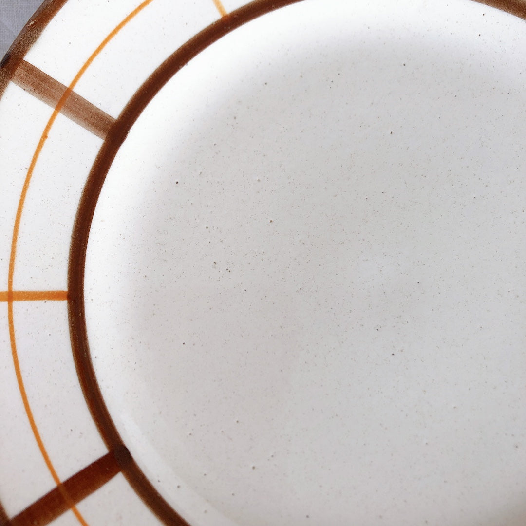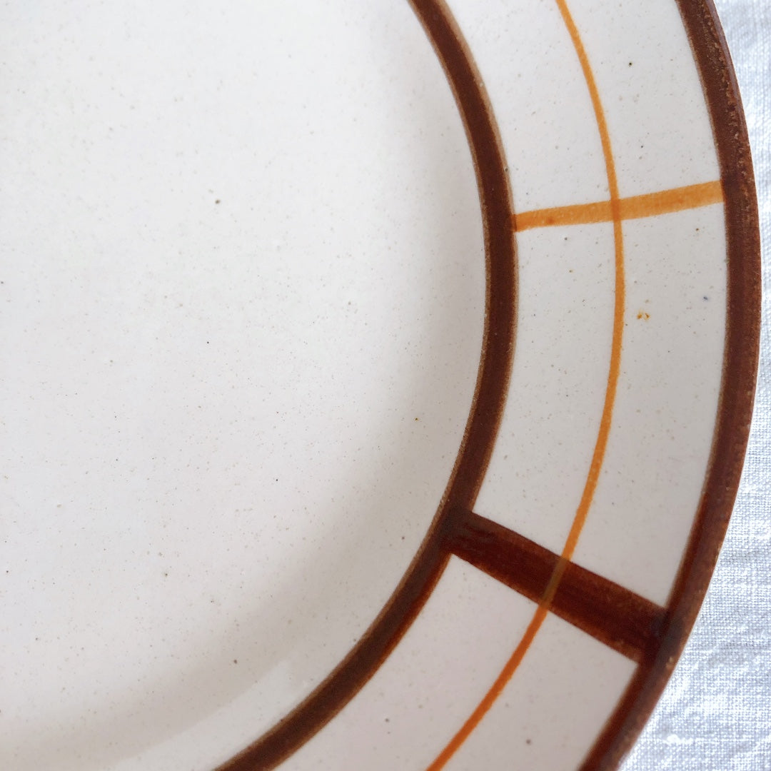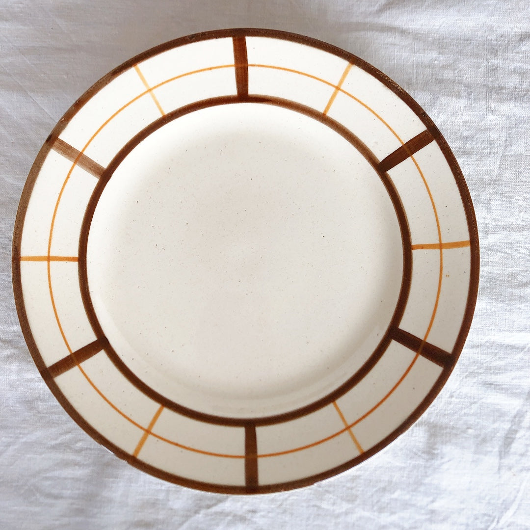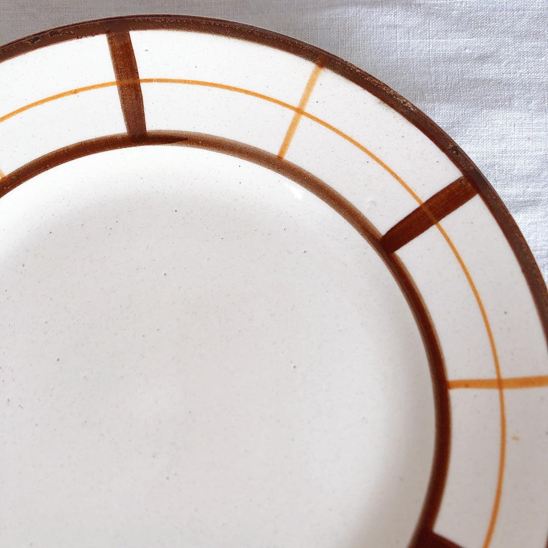 フランスアンティーク Longchamp ロンシャン YVONNE の平皿 B バスク柄 マロン✕オレンジ フランスアンティーク食器 ブロカント 蚤の市