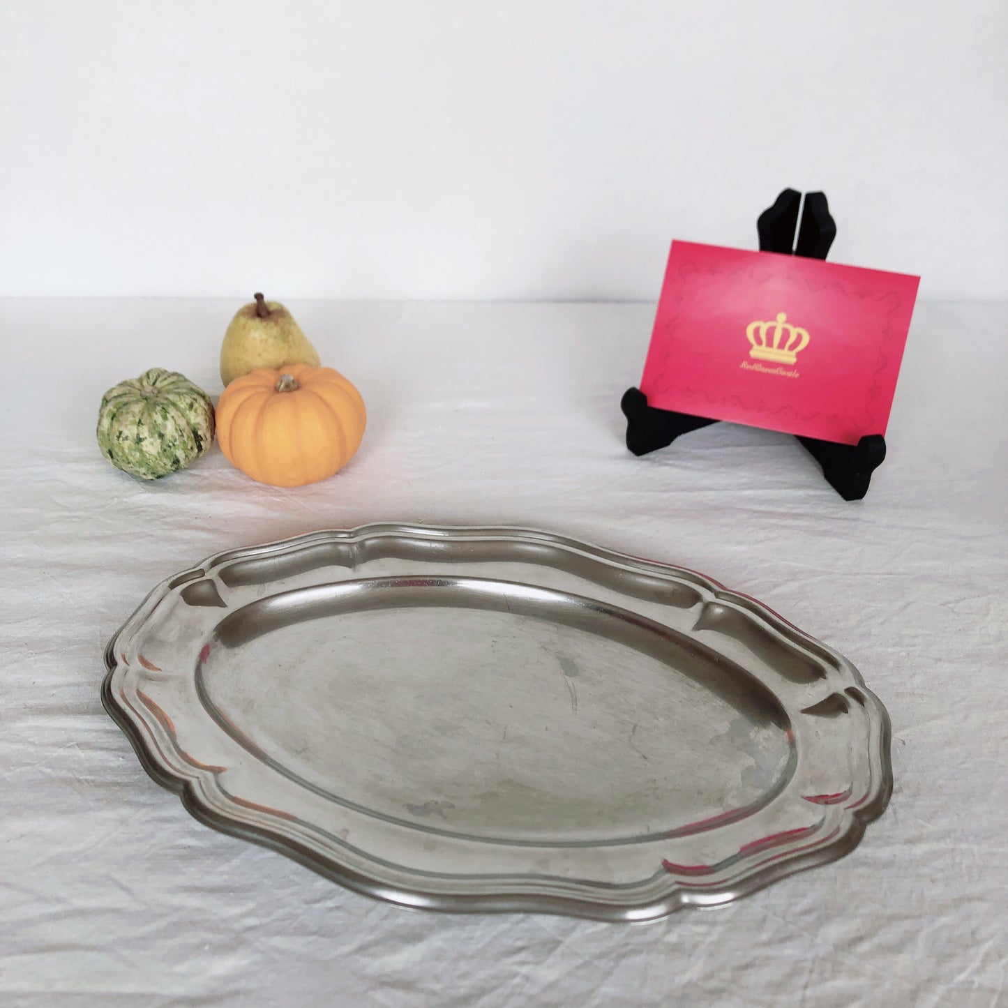 アンティーク 花リムプレート、オーバル皿、イノックス製です。