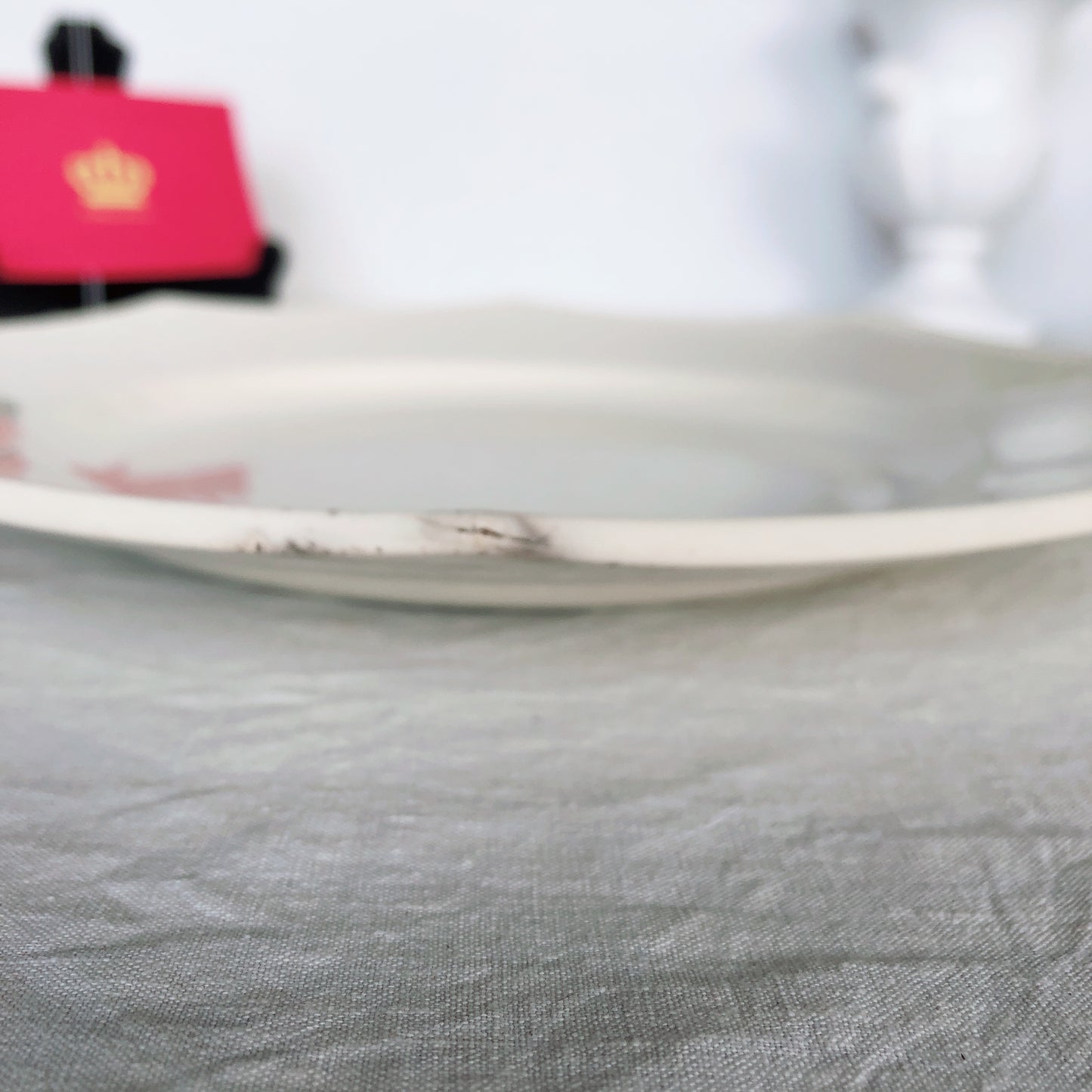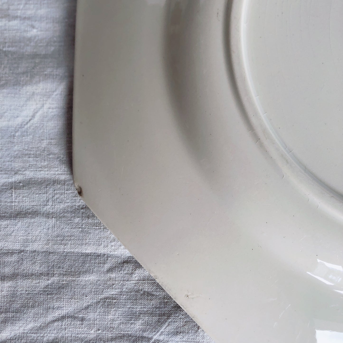 アンティーク品としてはたいへん良好なコンディションです。ほぼ使用感もない大変綺麗な状態です。 表に薄いラインが2本あります。裏に2か所チップがありますが、表からは見えません。縁に小さな汚れがありますが、こちらも表からは見えません。