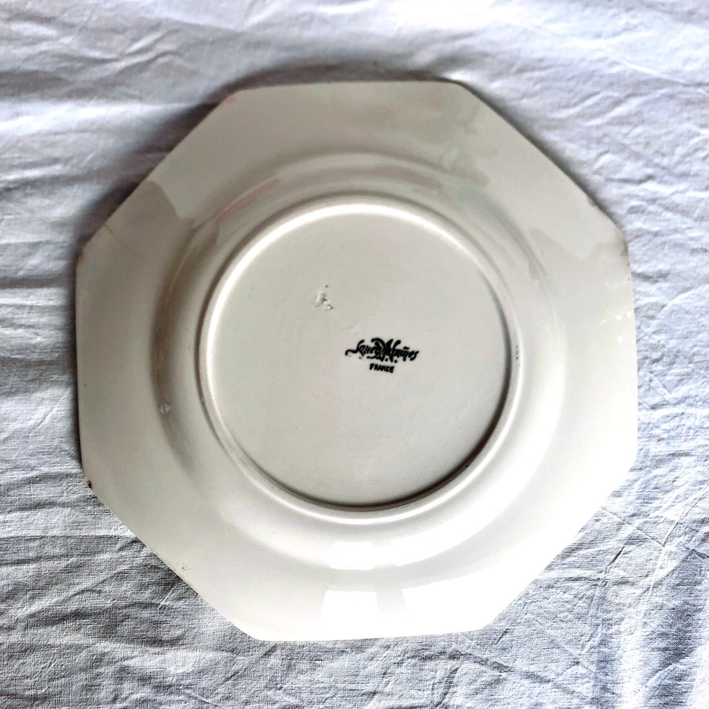 フランスアンティーク サルグミンヌ窯のオクトゴナルプレート、ファイアンスフィーヌです。