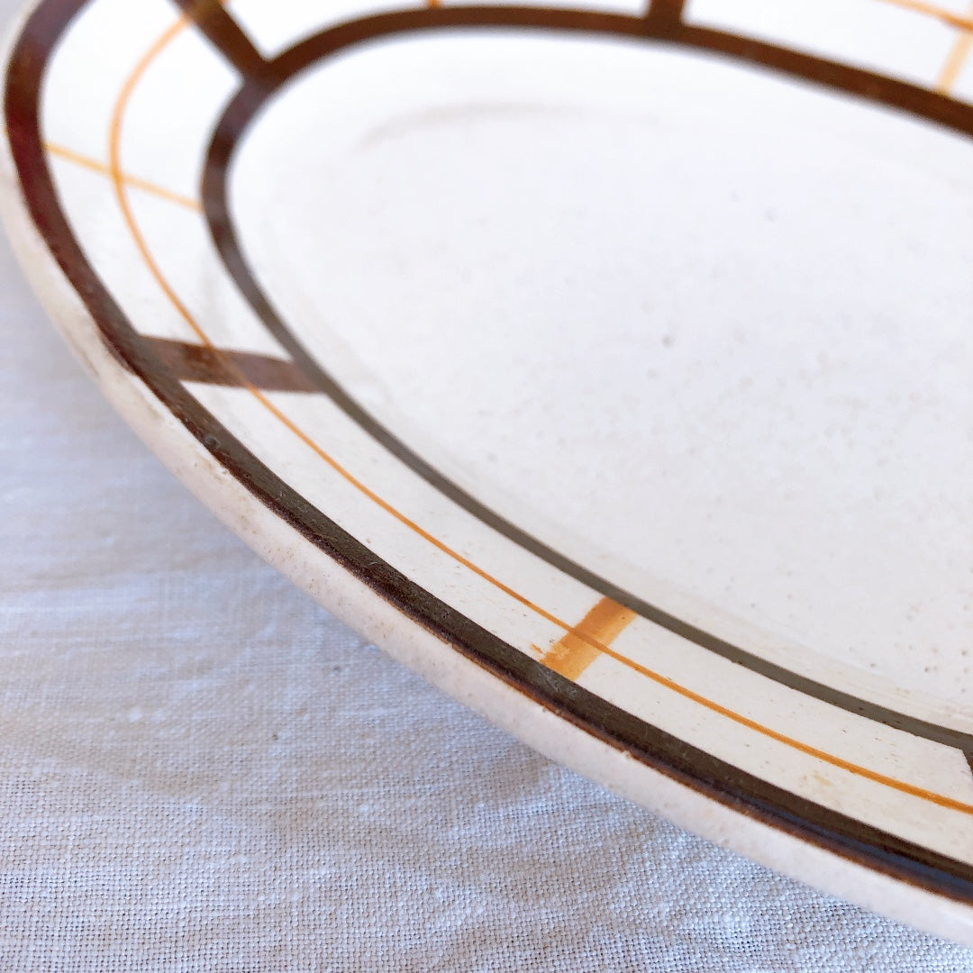 フランスアンティーク Longchamp ロンシャン YVONNE ラヴィエ バスク柄 マロン✕オレンジ フランスアンティーク食器 ブロカント 蚤の市