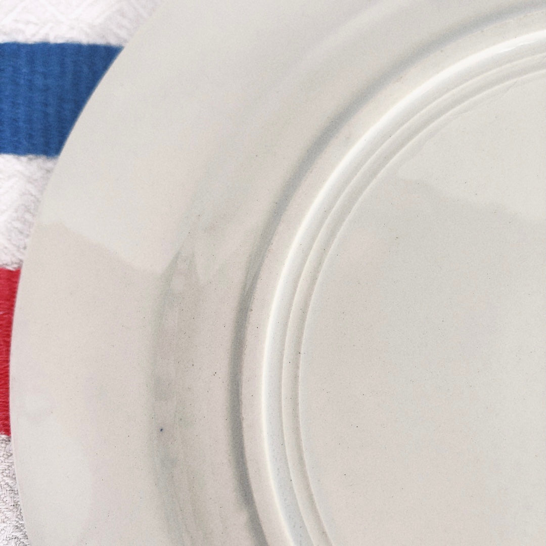 縁に小さな釉薬の剝がれが若干ありますが、白い部分でぱっと見は目立ちません。若干の小さな傷がありますが、大変綺麗な状態です。