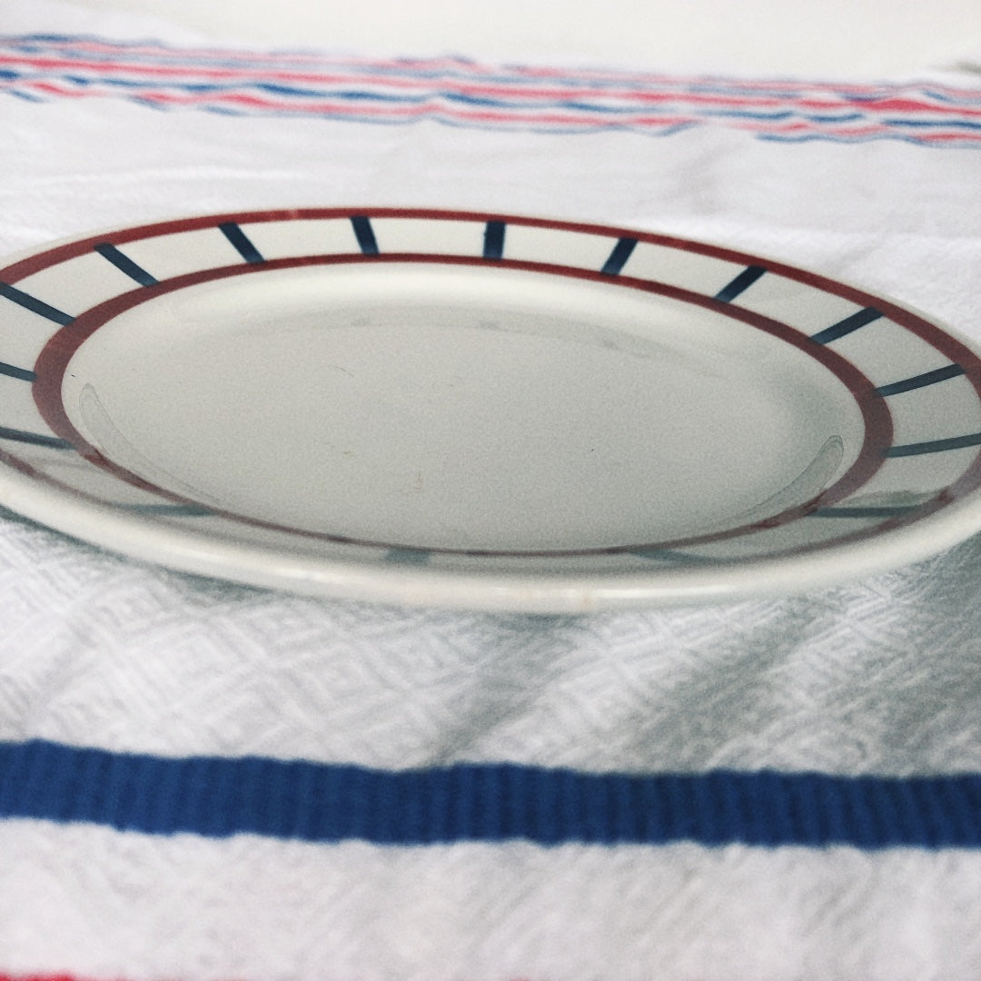 ご予約 フランスアンティーク HBCM Béarn クレイユエモントロー バスク柄 デザートプレート「レッドxダークブルー」A その他3点セットフランスアンティーク食器 ブロカント 蚤の市