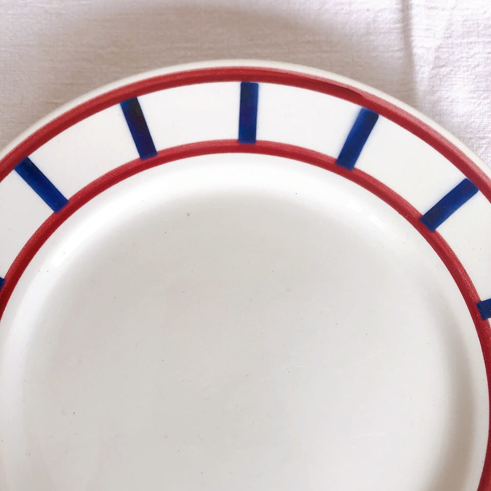 HBCM(Hippolyte Boulenger-Creil-Montereauクレイユモントロー)窯製 Béarn モデルのバスク柄プレート・平皿、レッドxダークブルー(赤x青)です 。