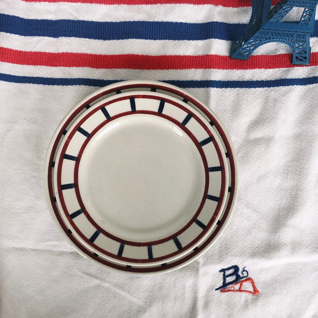 HBCM(Hippolyte Boulenger-Creil-Montereauクレイユ&モントロー)窯製 Béarn モデルのバスク柄ディナープレート、レッドxダークブルー(赤x青)です 。