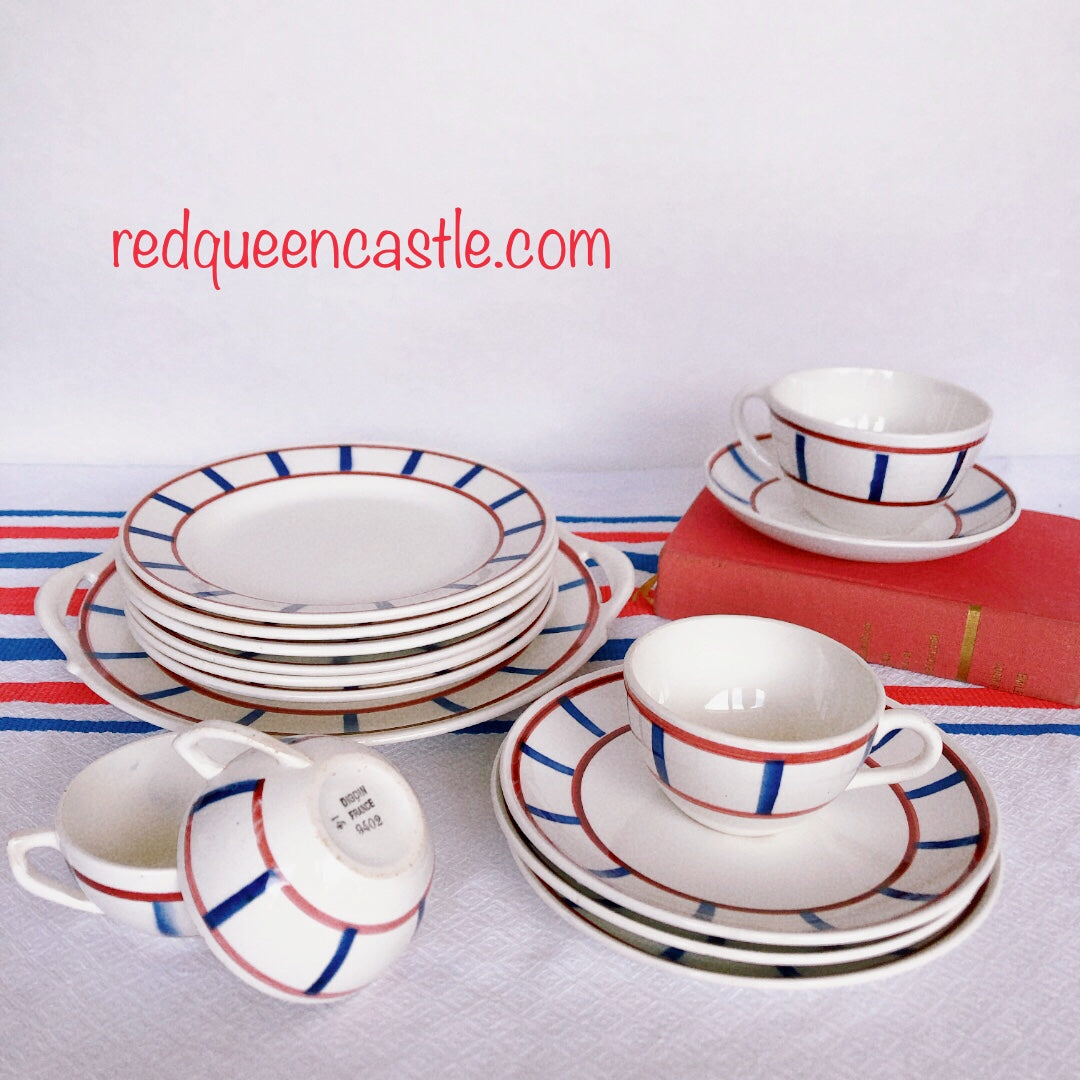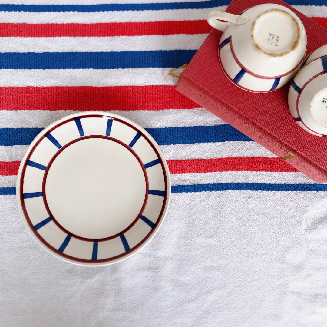 ご予約 ディゴワンサルグミンヌ バスク柄 デザートプレート 17.5cm A&C ルージュ・マリンブルー 他3点セット フランスアンティーク食器 フランス蚤の市・ブロカント