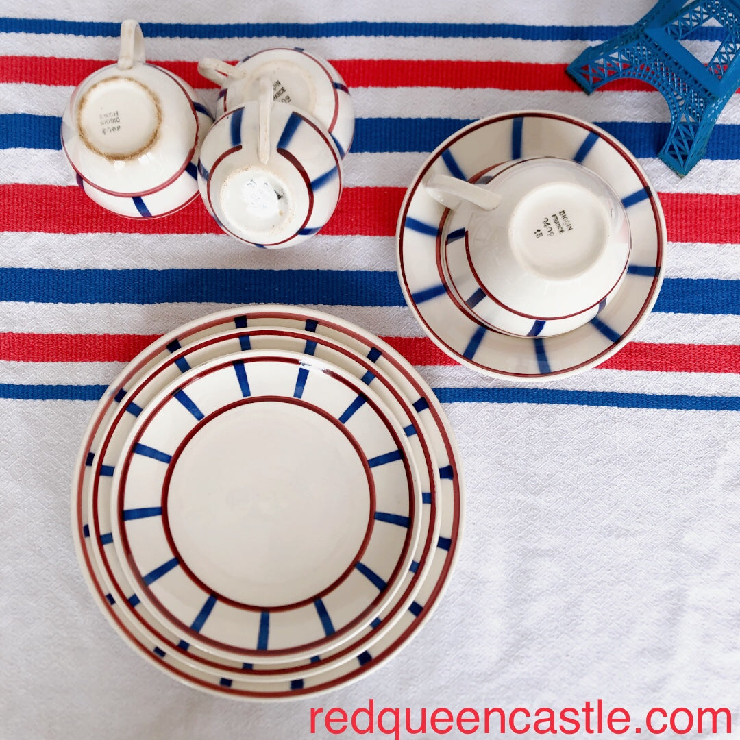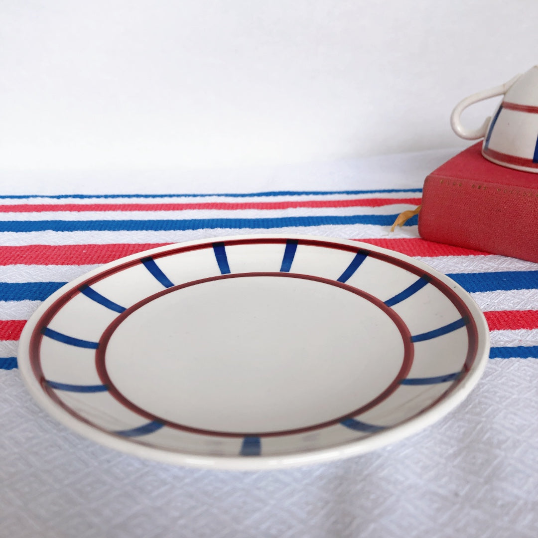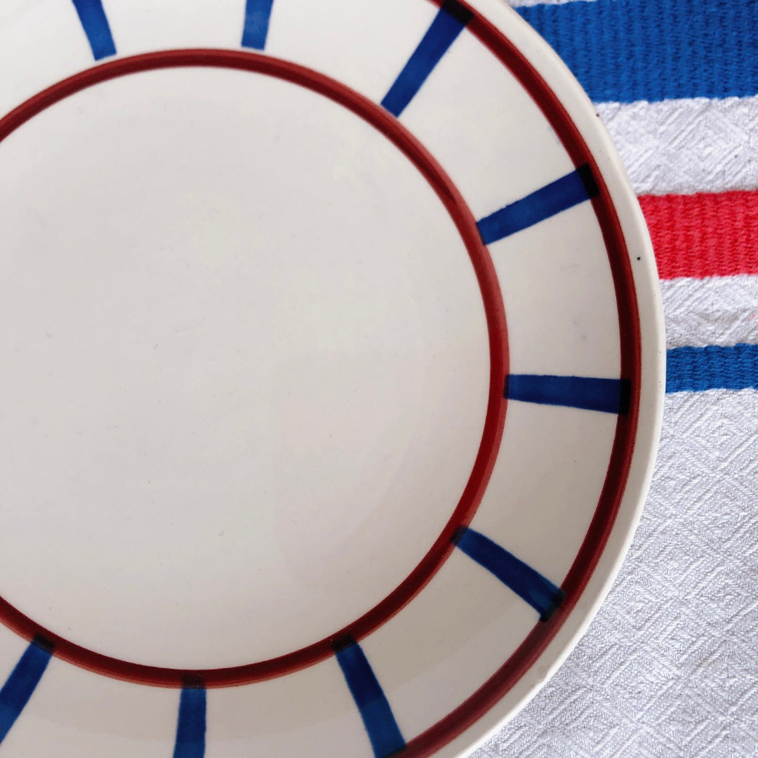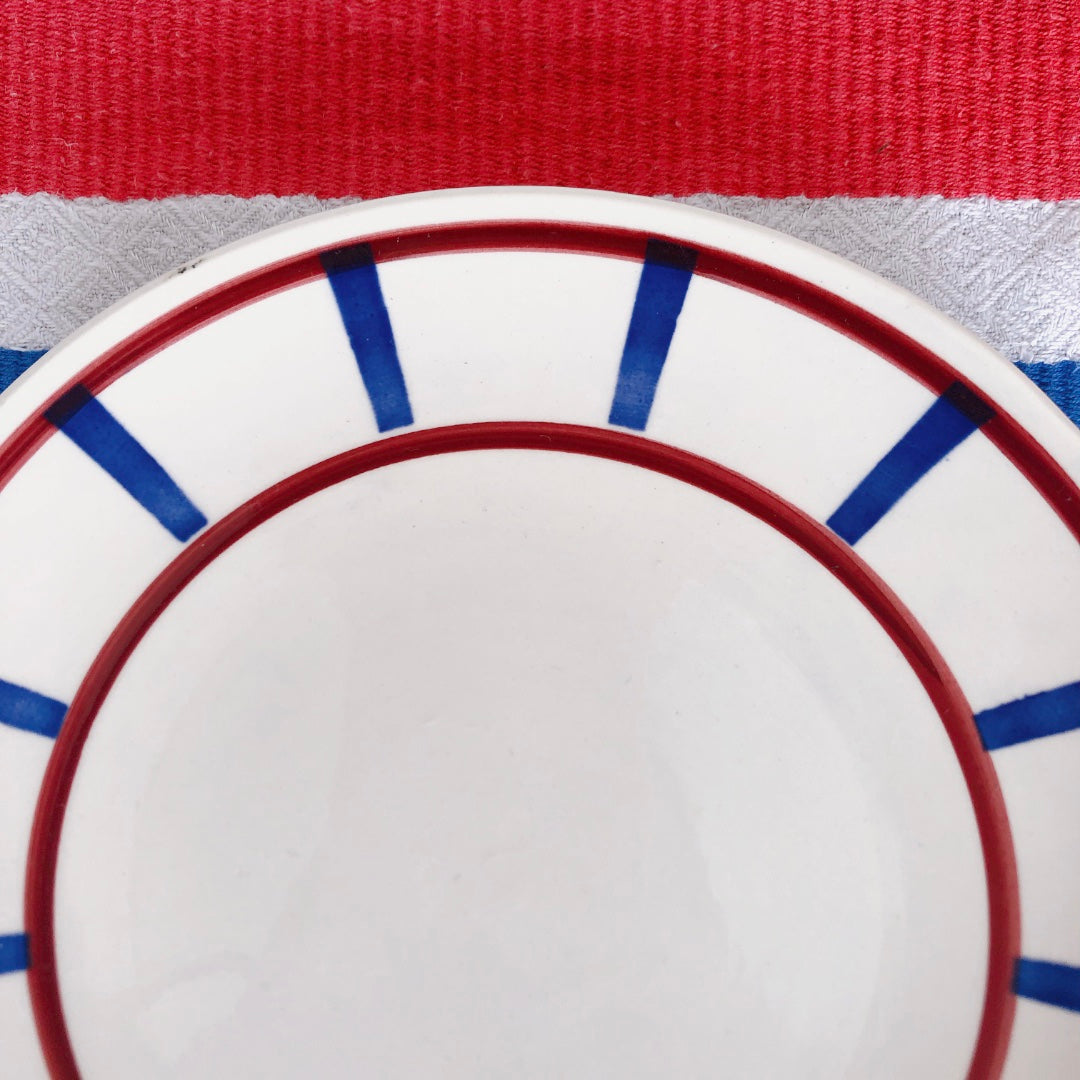 ディゴワンサルグミンヌ バスク柄 デザートプレート 17.5㎝ C ルージュ・マリンブルー フランスアンティーク食器 フランス蚤の市・ブロカント