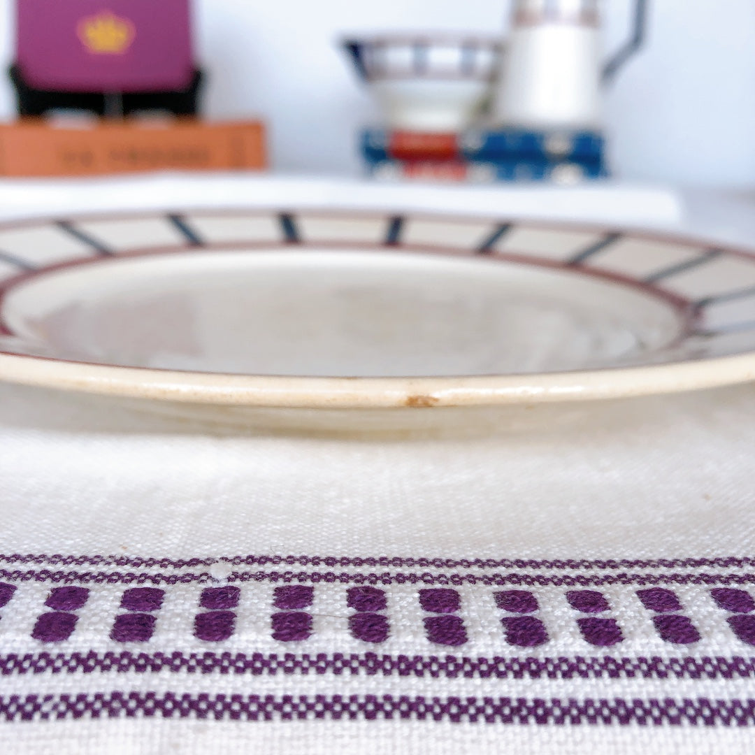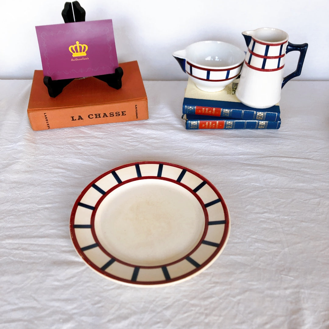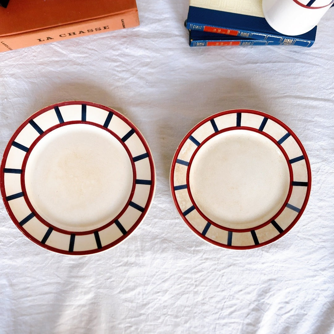 クレイユエモントロー HBCM Béarn ディナープレート/平皿 バスク柄 「ボルドーxダークブルー」フランスアンティーク食器 ブロカント 蚤の市