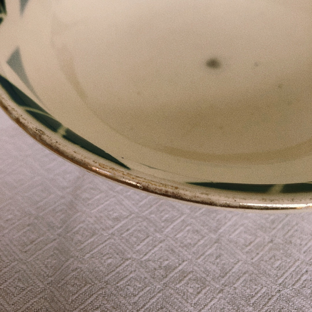 アンティーク品としては良好なコンディションです。縁のゴールドラインの剥がれがみられます。中央にシミが若干みられます。その他、カケやラインはございません。アンティーク品としては良好なコンディションです。