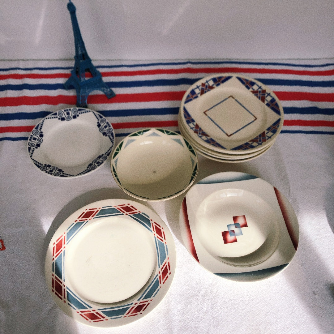 ムーランデルー Moulin des Loups 『ORANAISE』キャロットプレート 深皿 幾何学模様 フランスアンティーク食器 ブロカント 蚤の市