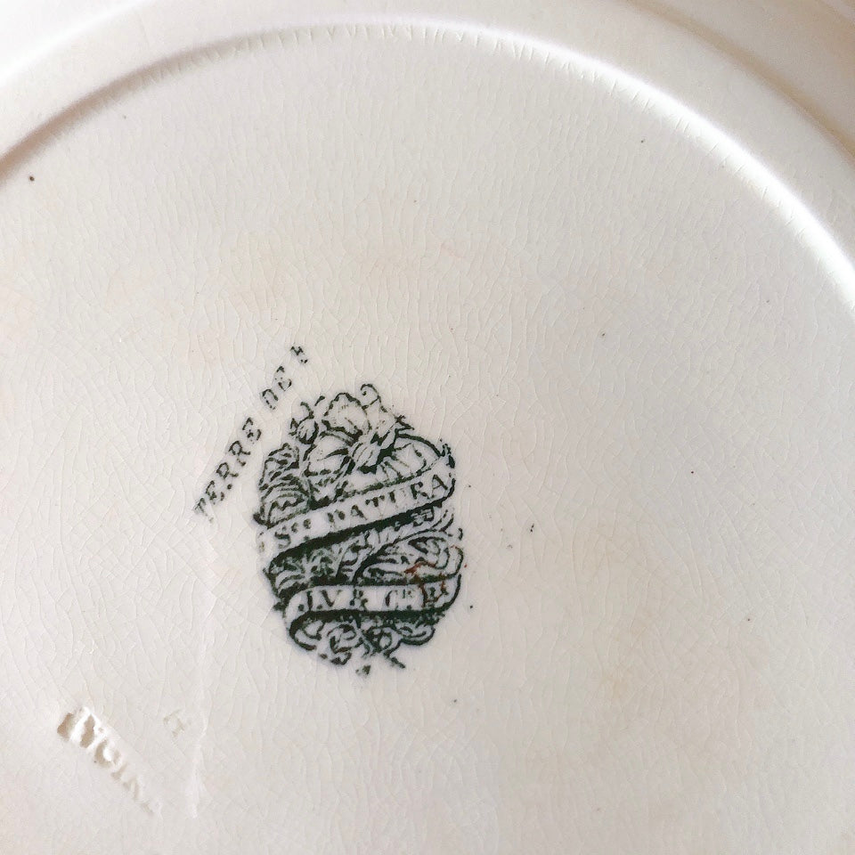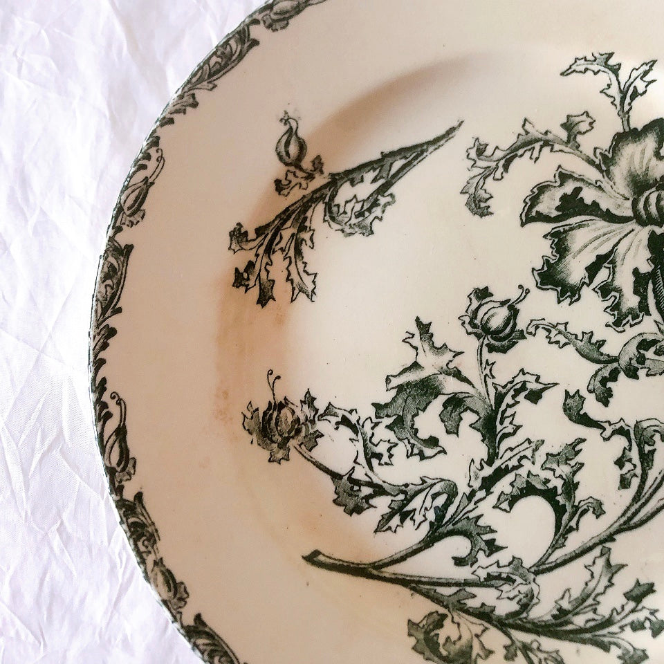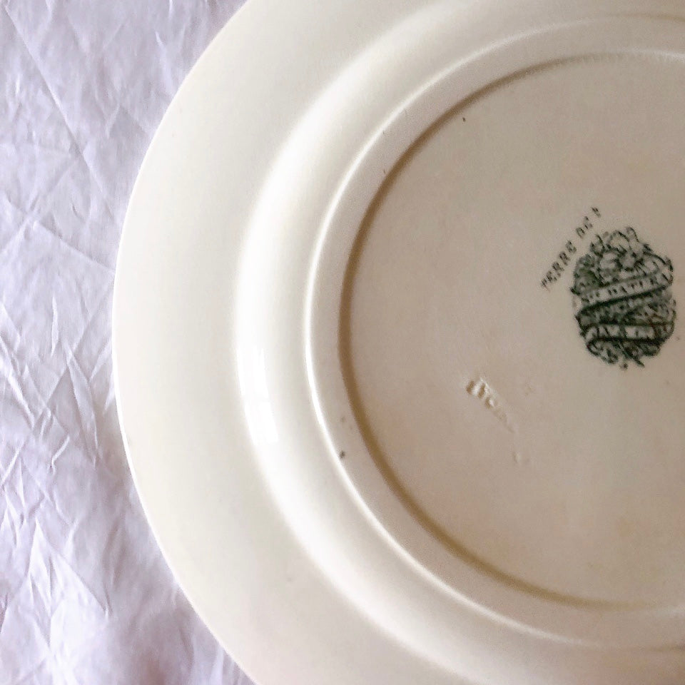 ヴィエイヤーボルドー ディナープレート/平皿 DATURA ボタニカル模様 フランスアンティーク食器 ブロカントアンティーク 蚤の市