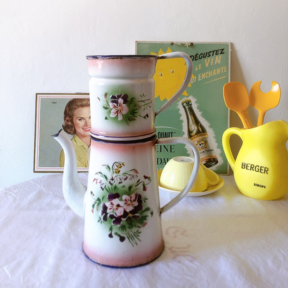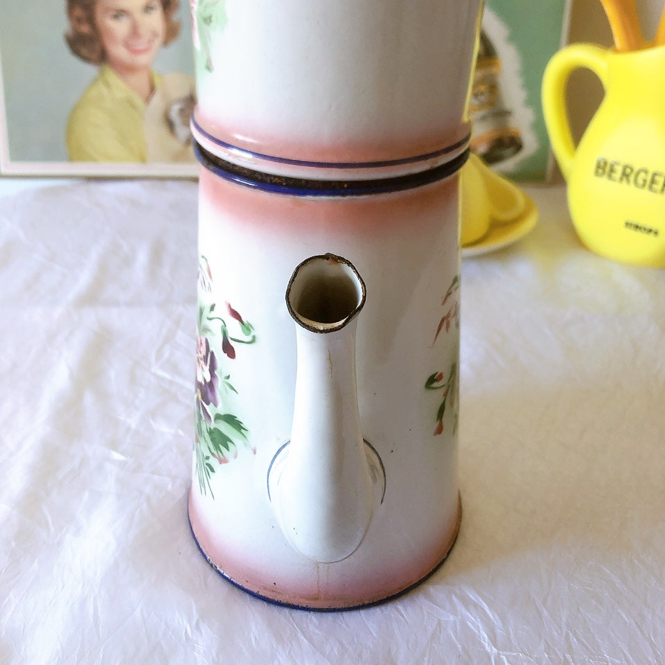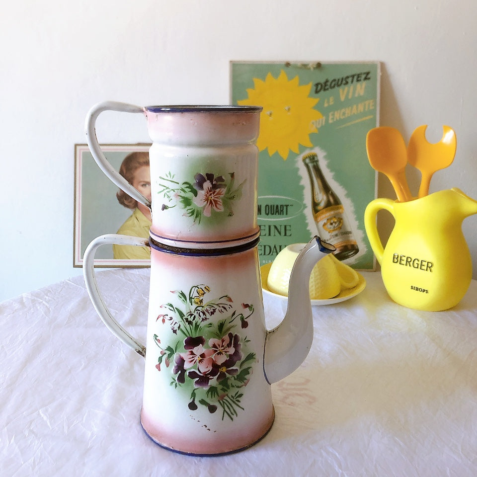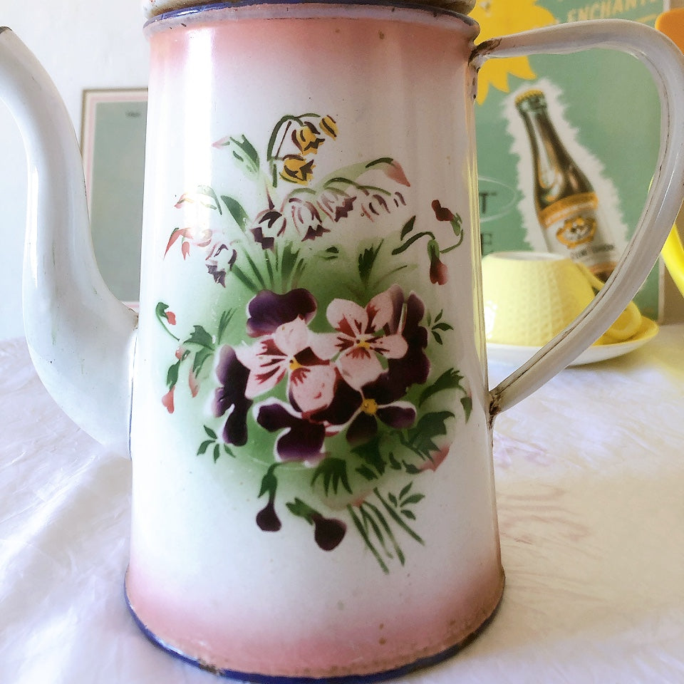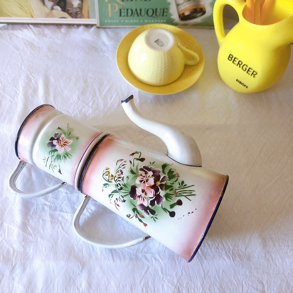 フランスアンティーク JAPY社 ホーロー製コーヒーポット(カフェティエール)パンジー&すずらん フランスアンティーク・ビンテージ雑貨 ブロカント 蚤の市