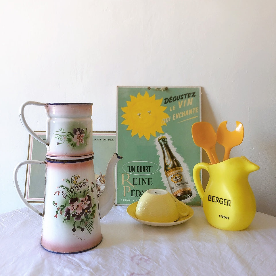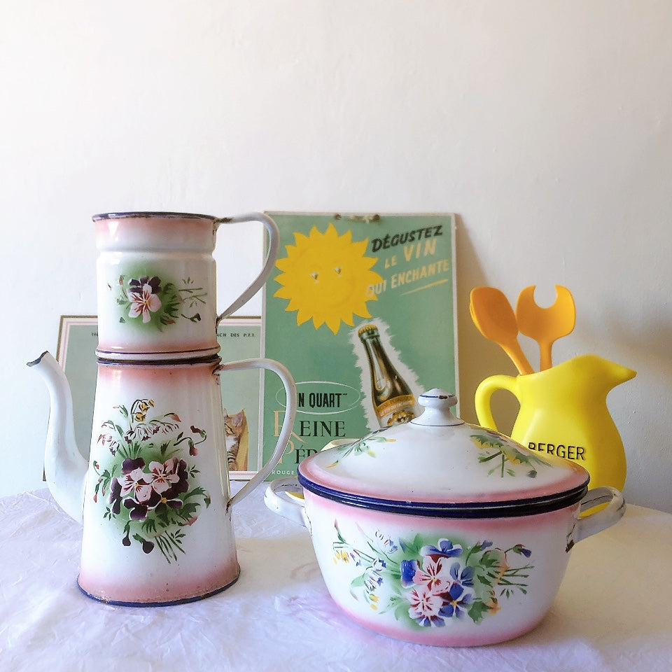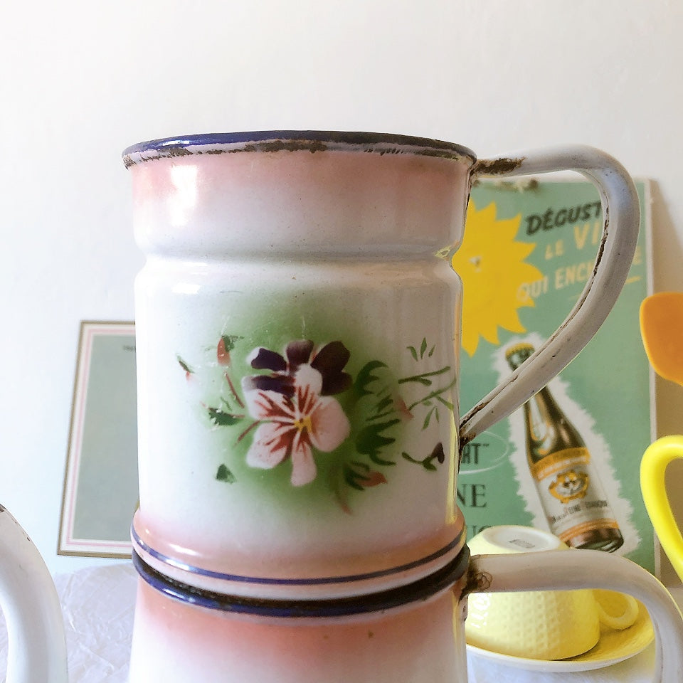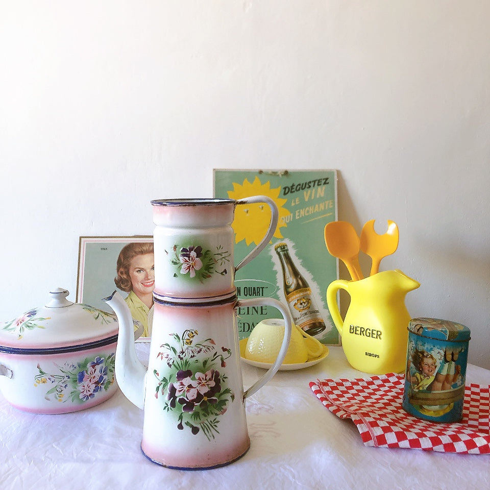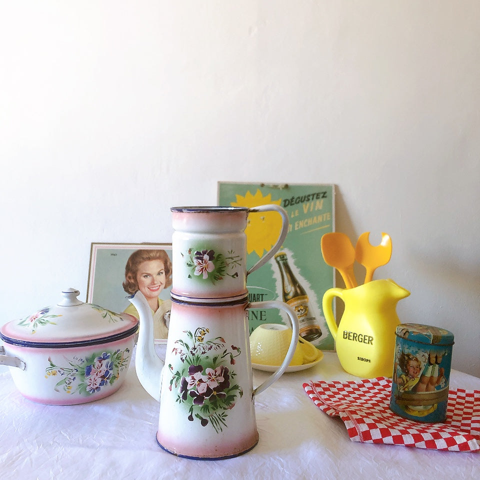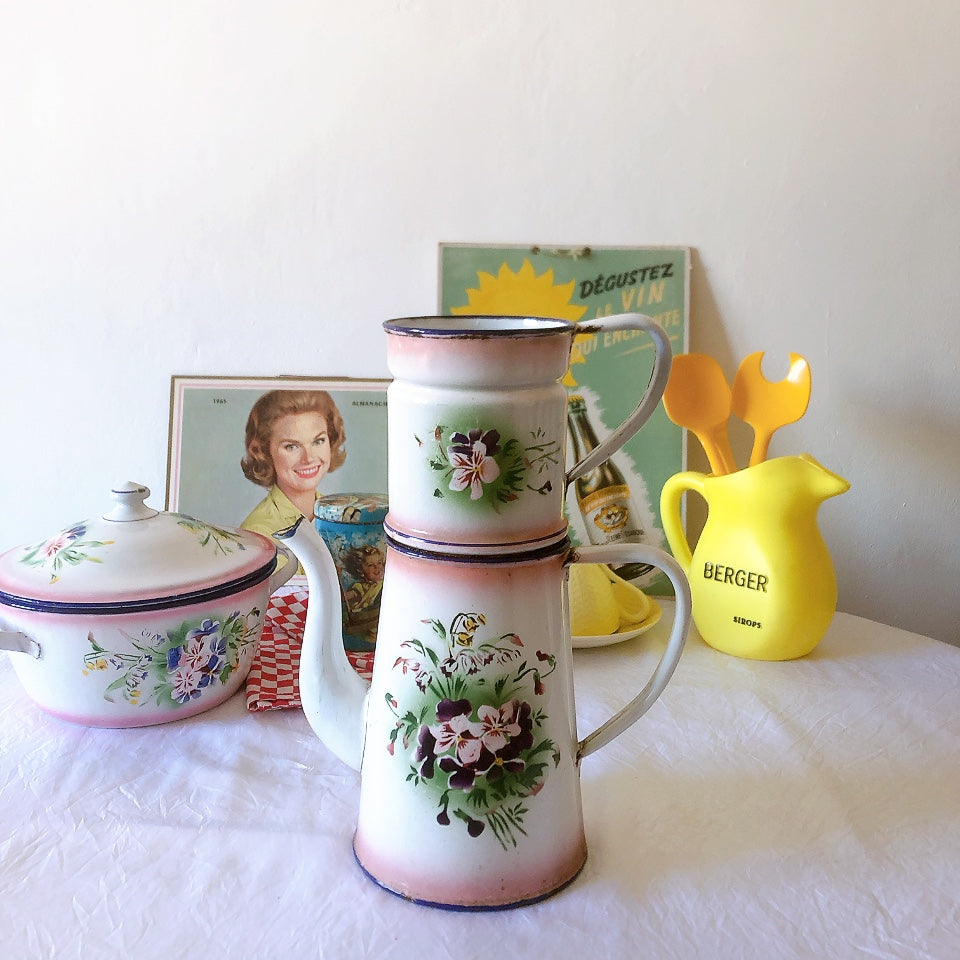 フランスアンティーク JAPY社 ホーロー製コーヒーポット(カフェティエール)パンジー&すずらん フランスアンティーク・ビンテージ雑貨 ブロカント 蚤の市