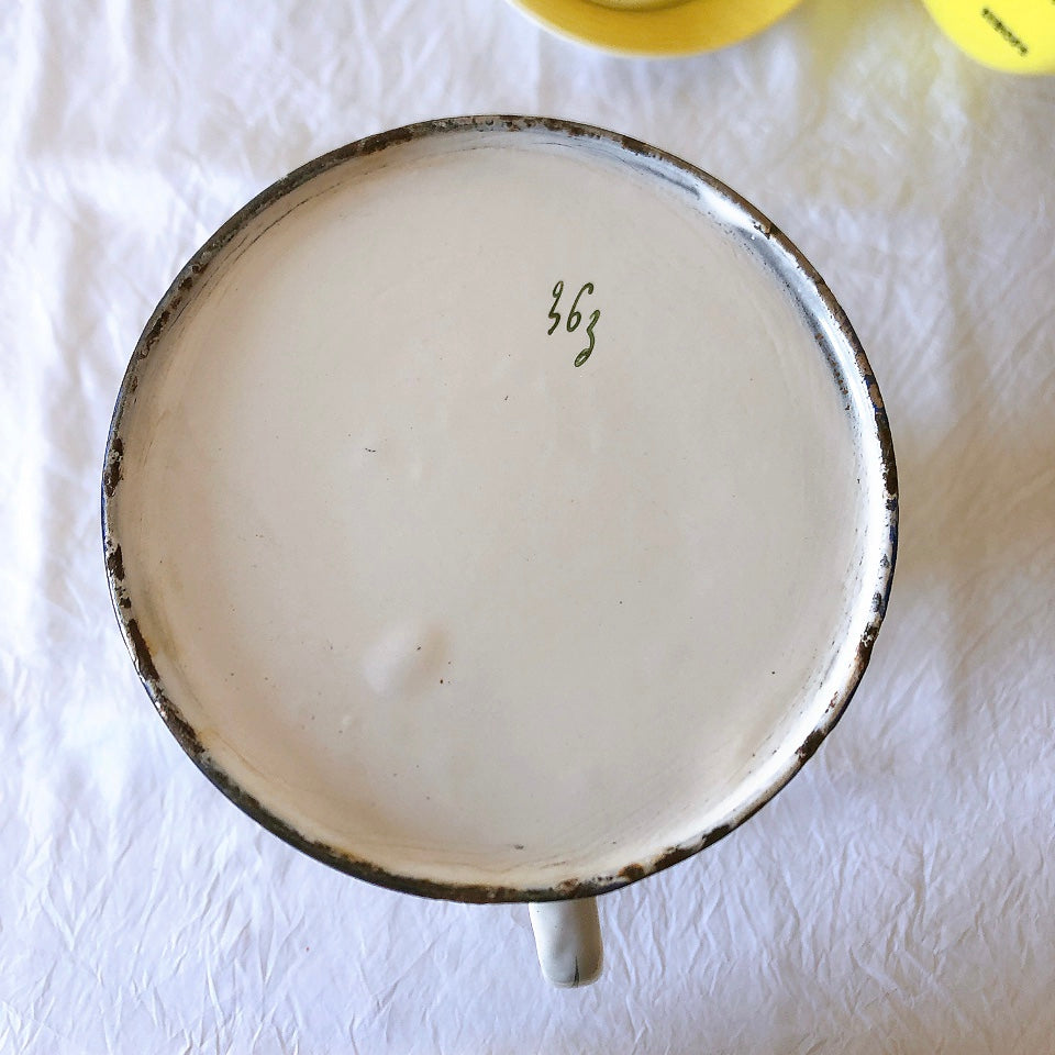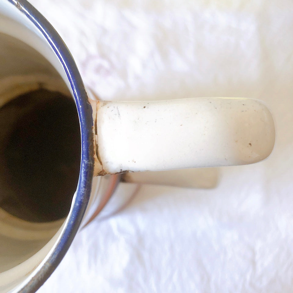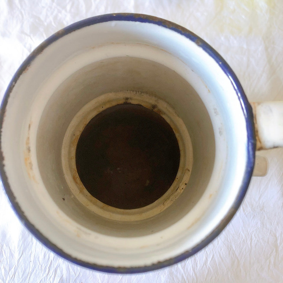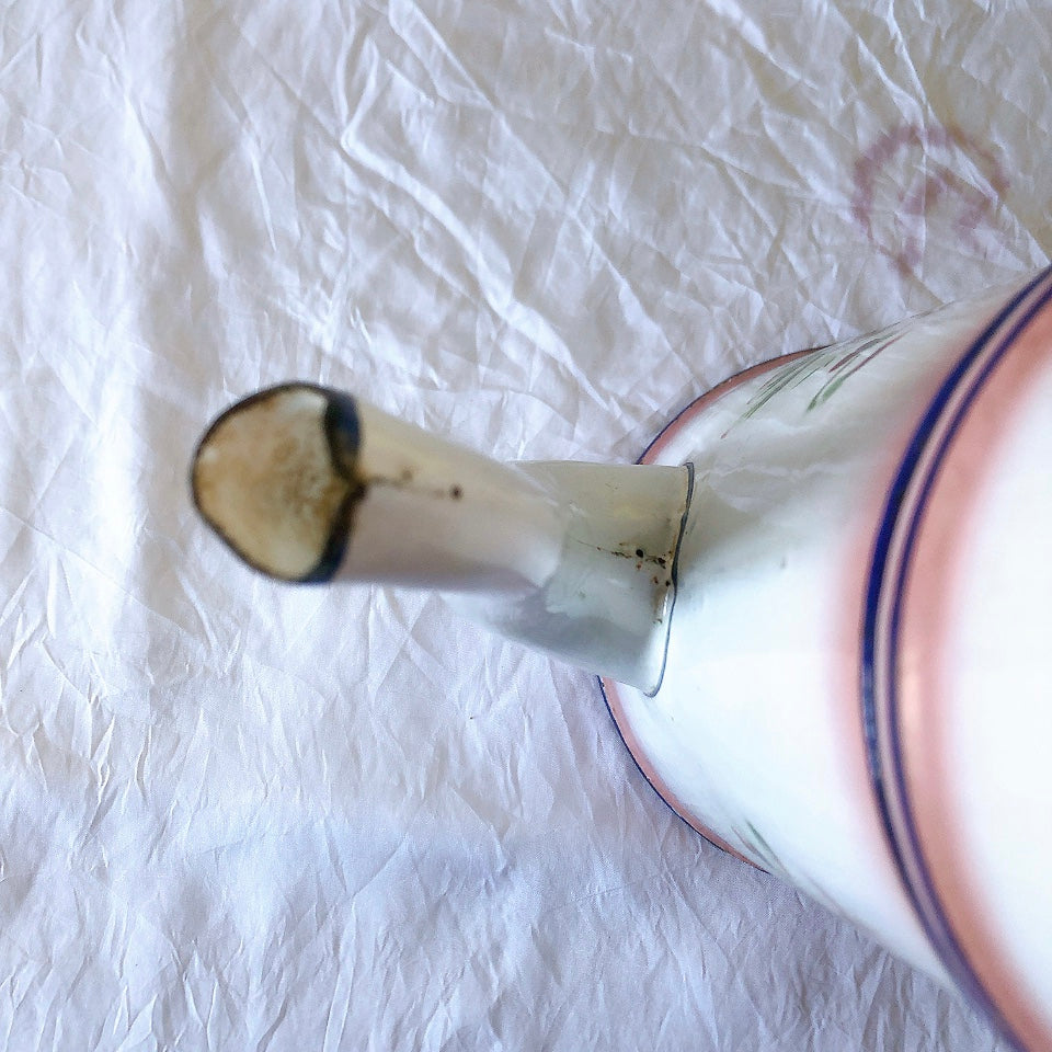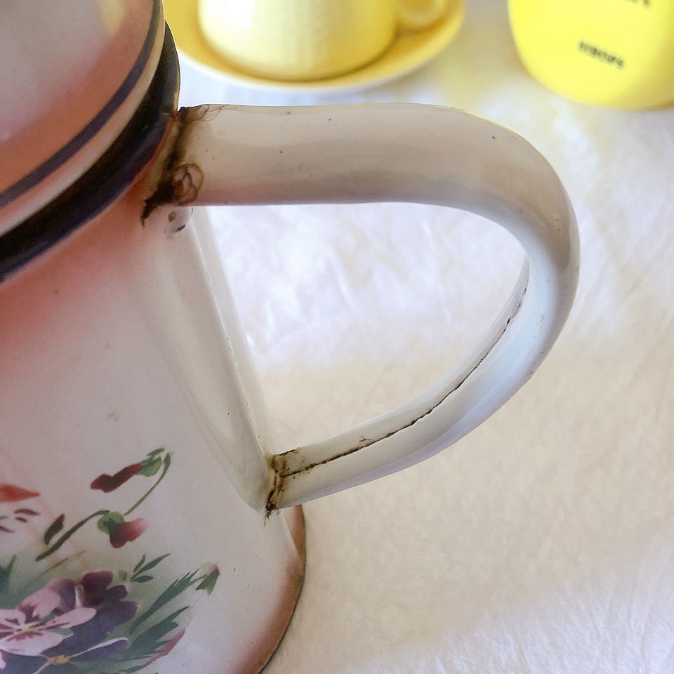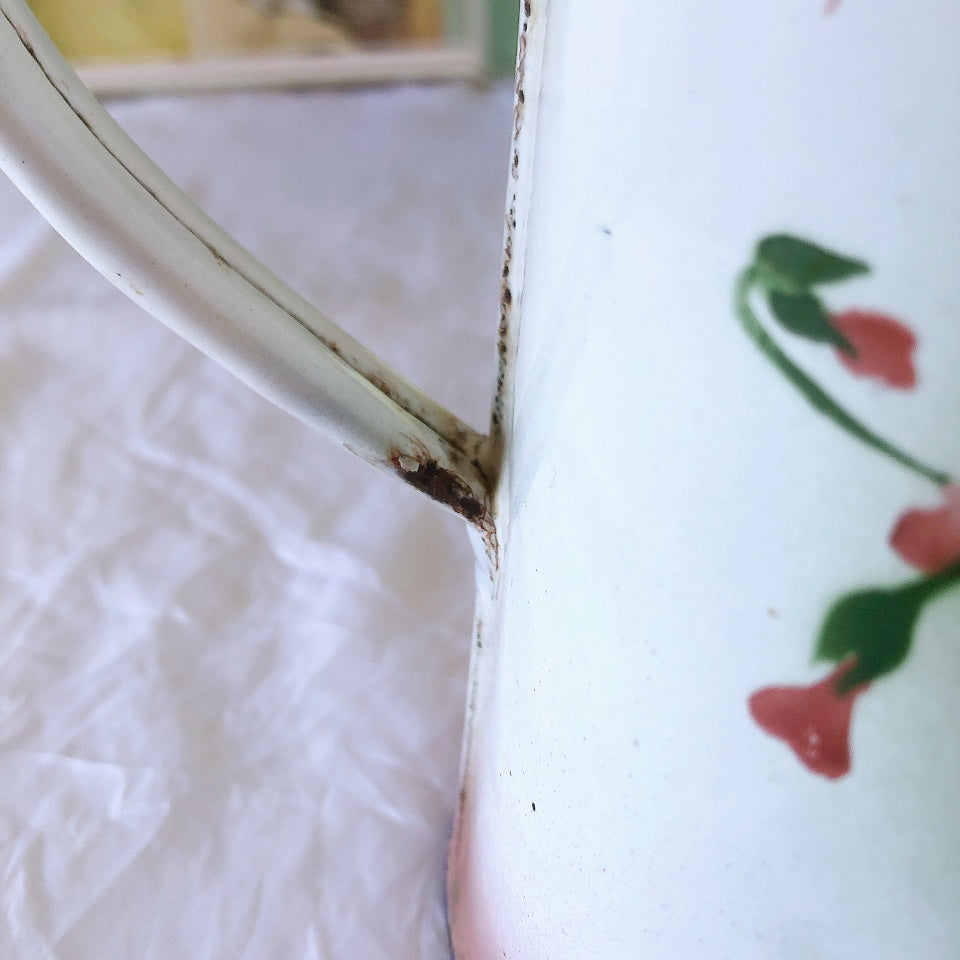 年代を経て多少のホーローのはげ、さび等はありますが全体的に綺麗な状態です。 水差しとして花を飾ったり、お部屋のデコレーションとしてもご使用いただけます。