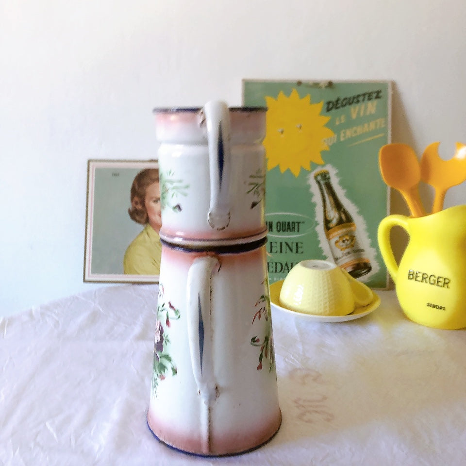 フランスアンティーク、ジャピー社のホーロー製ポット、コーヒーポット、カフェティエールです。
