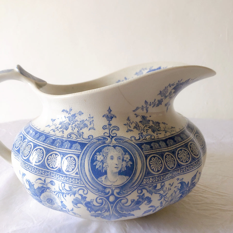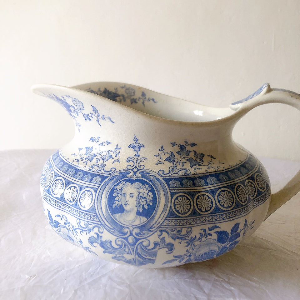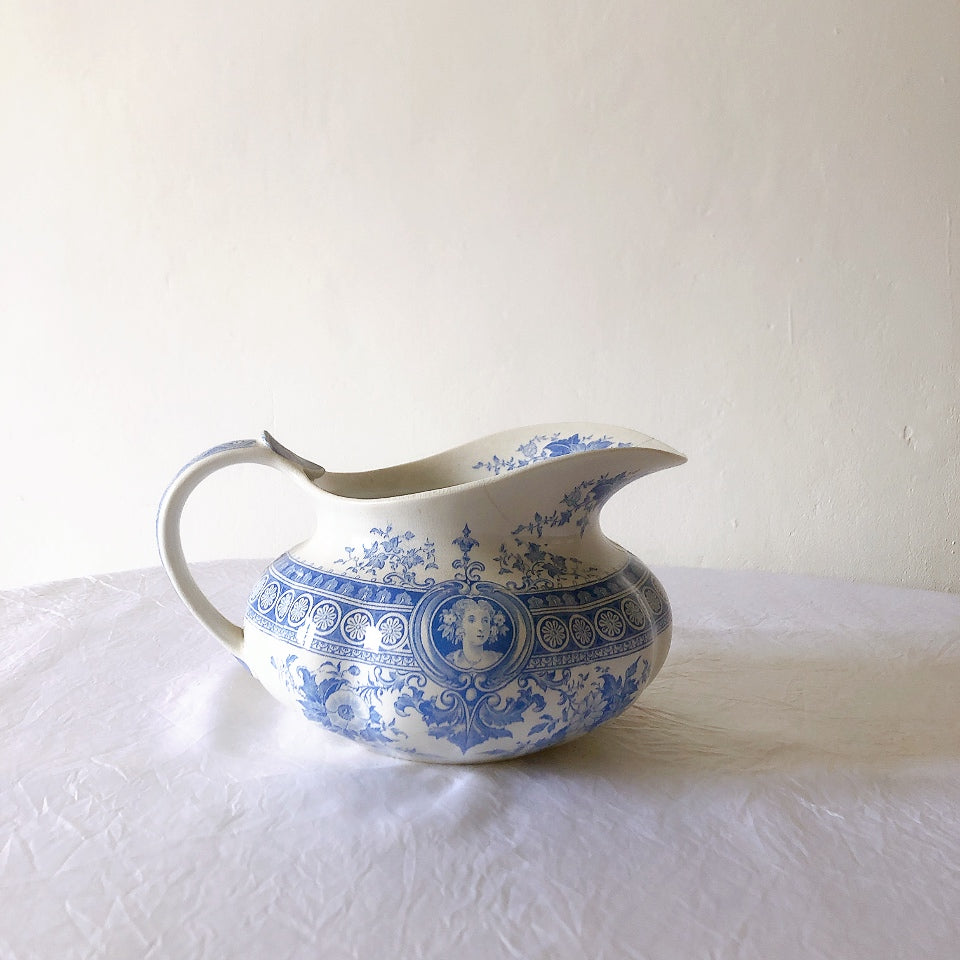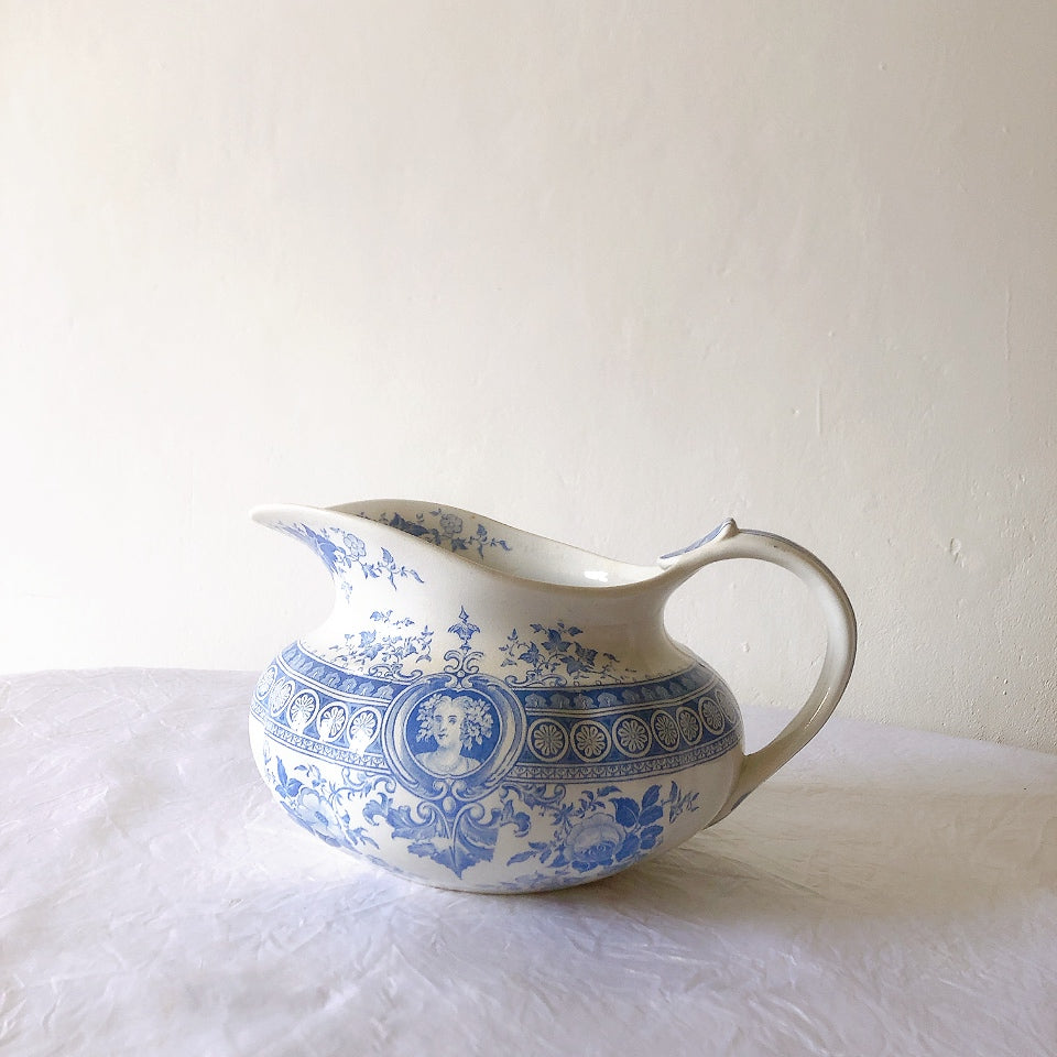 フランスアンティーク UCサルグミンヌ パリジア parisia ブルー ピッチャー ピシェ 水差し アンティーク食器 ブロカント 蚤の市