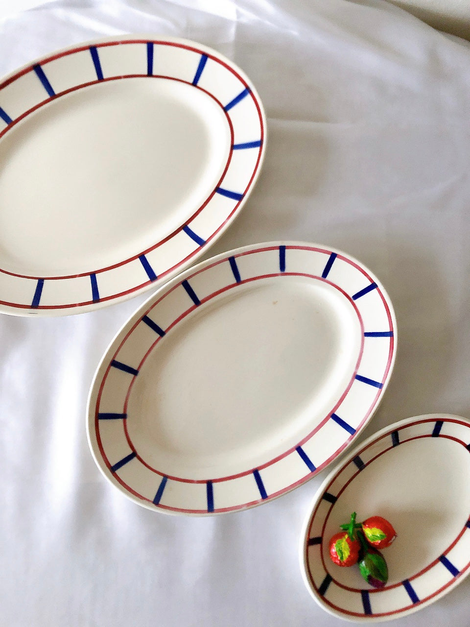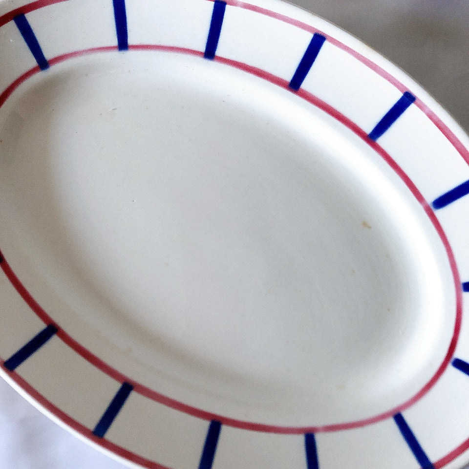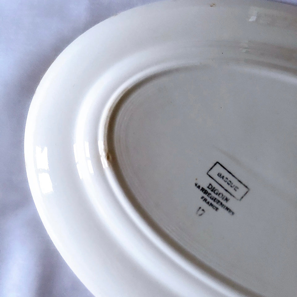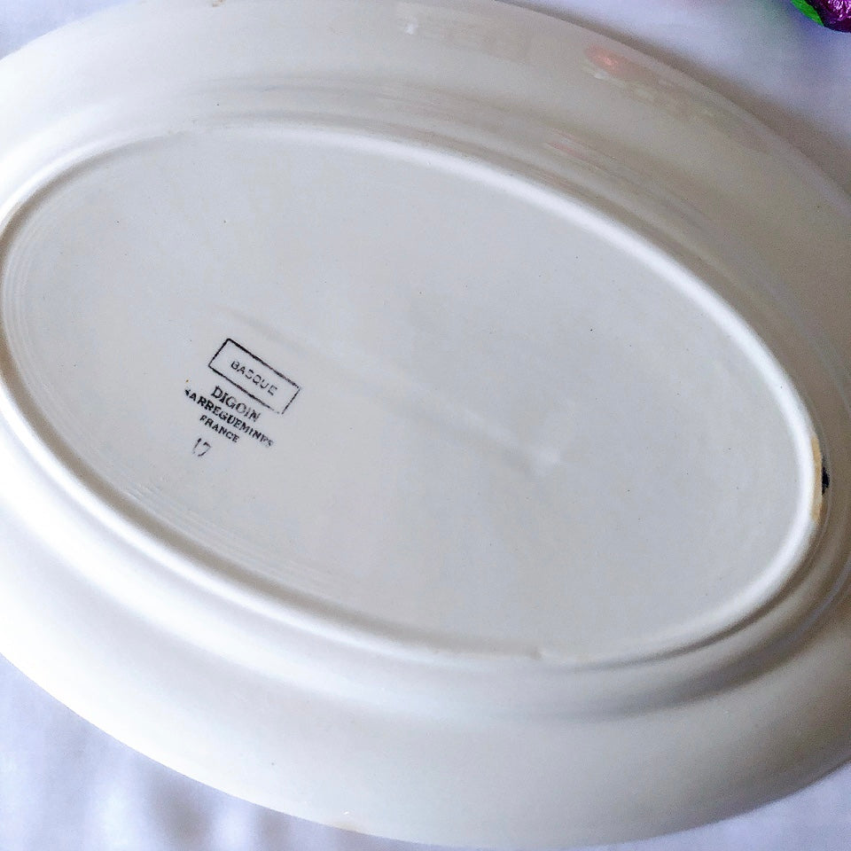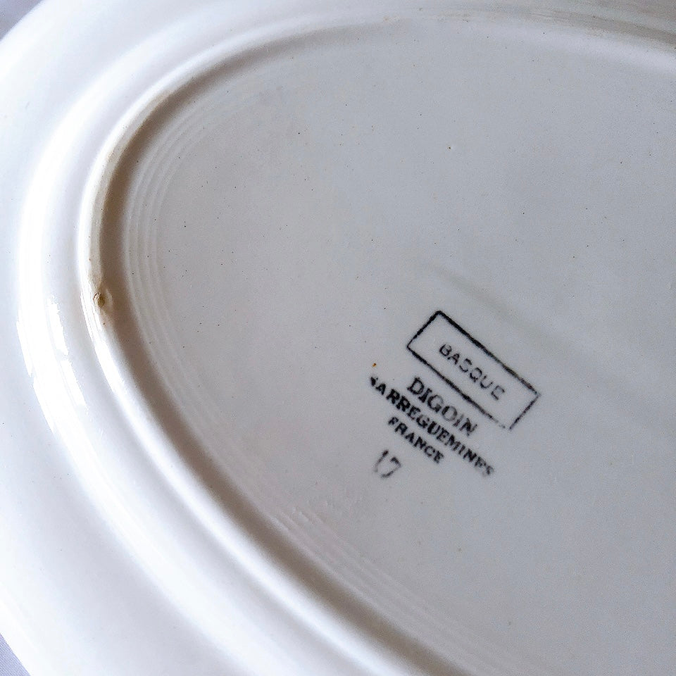 ディゴワンサルグミンヌ 『BASQUE』バスク柄オーバル皿 31㎝ ルージュ・マリン フランスアンティーク食器 フランス蚤の市・ブロカントアンティーク