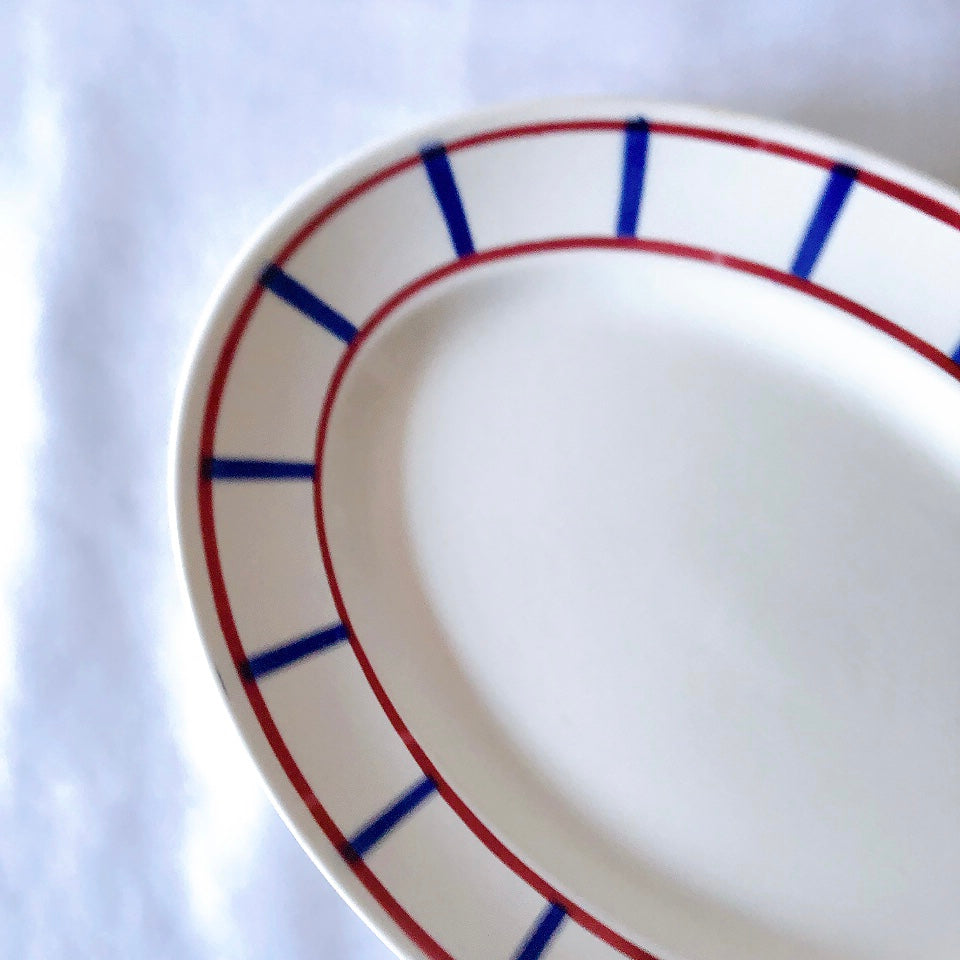ディゴワンサルグミンヌ 『BASQUE』バスク柄オーバル皿 楕円形大皿 36㎝ ルージュ・マリン フランスアンティーク食器 フランス蚤の市・ブロカントアンティーク