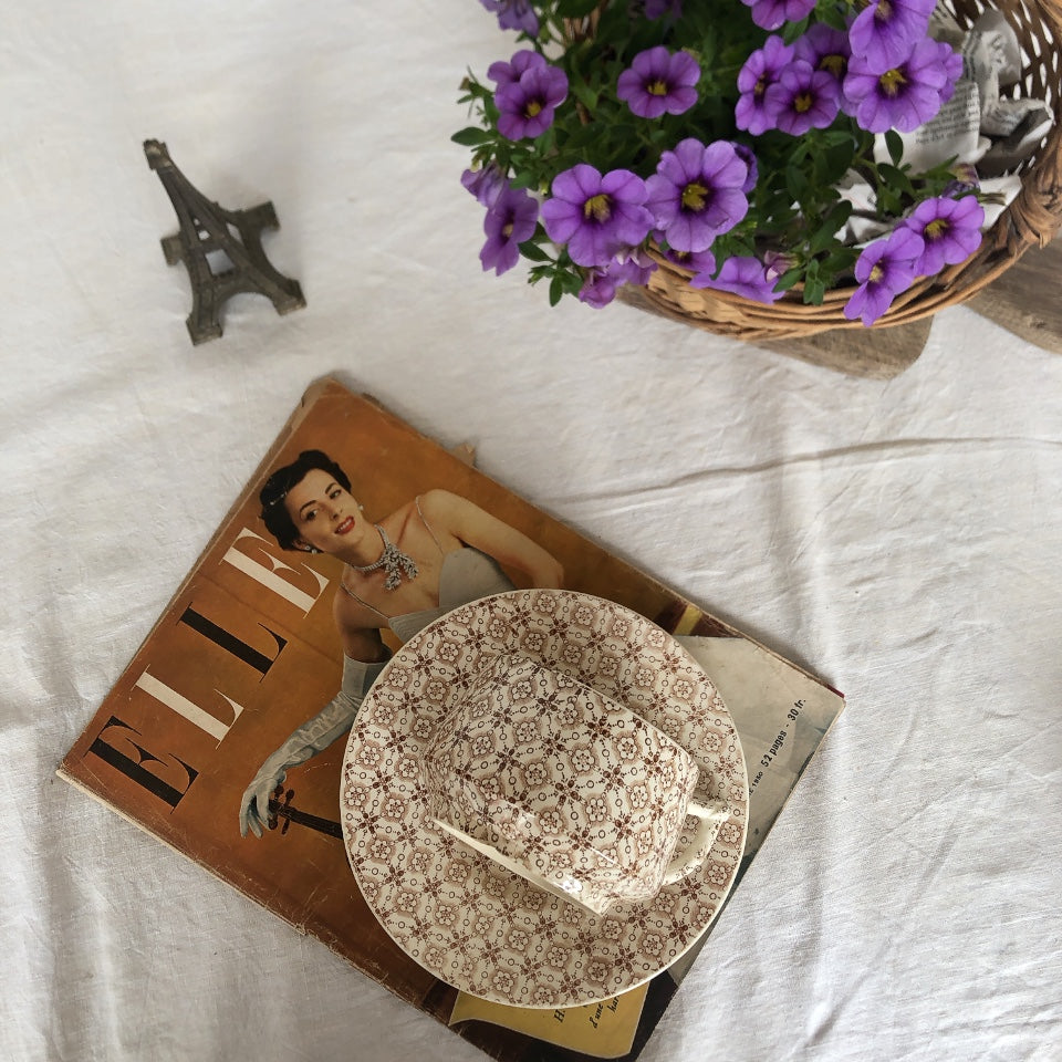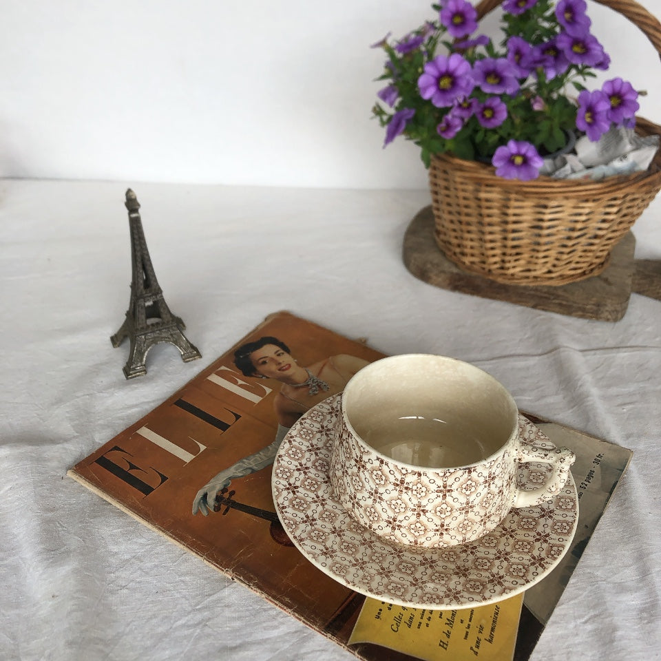 予約済 フランスアンティーク ヴィエイヤーボルドー ショコラカップ&ソーサー &コランダ(水切り)フランスブロカント・蚤の市