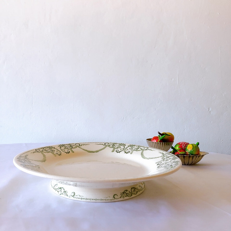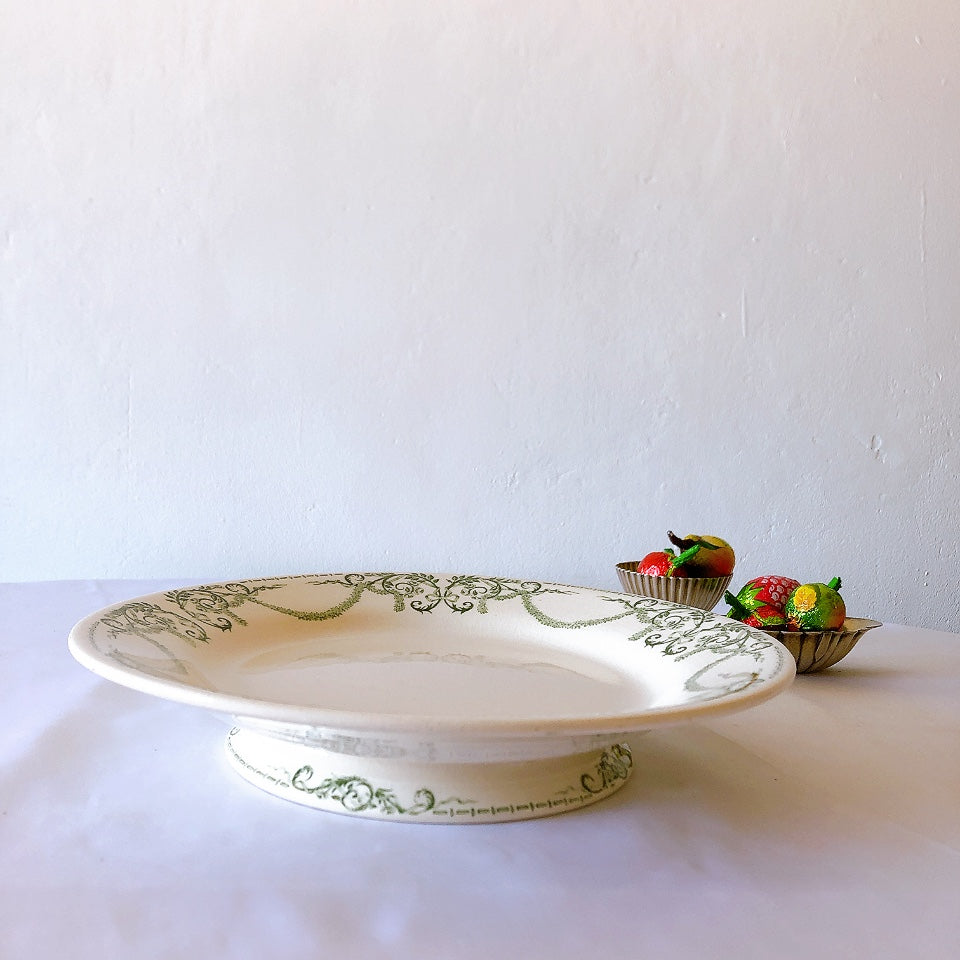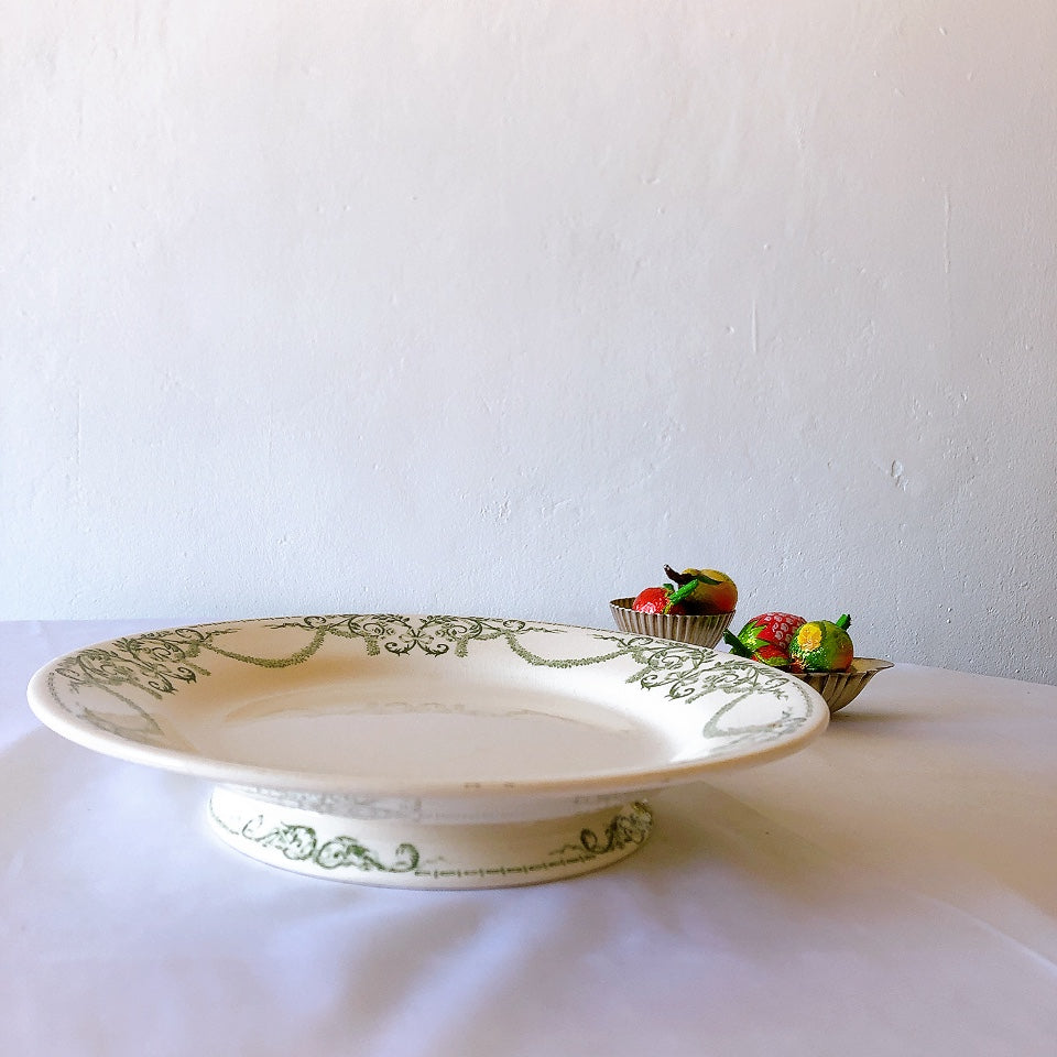 クレイユモントロー 『ナポレオン』グリーン コンポティエ、ケーキスタンド フランスアンティーク食器 ブロカントアンティーク 蚤の市