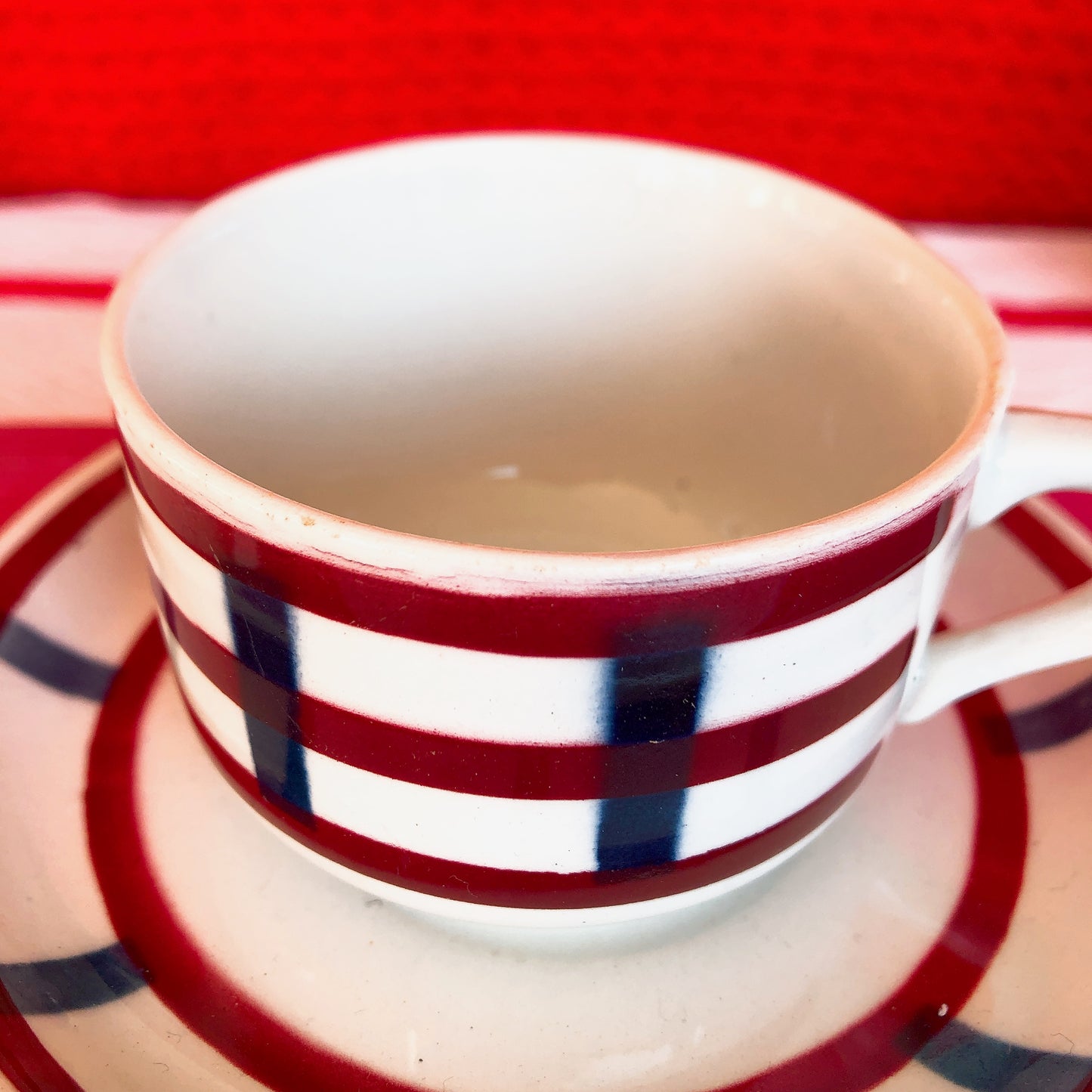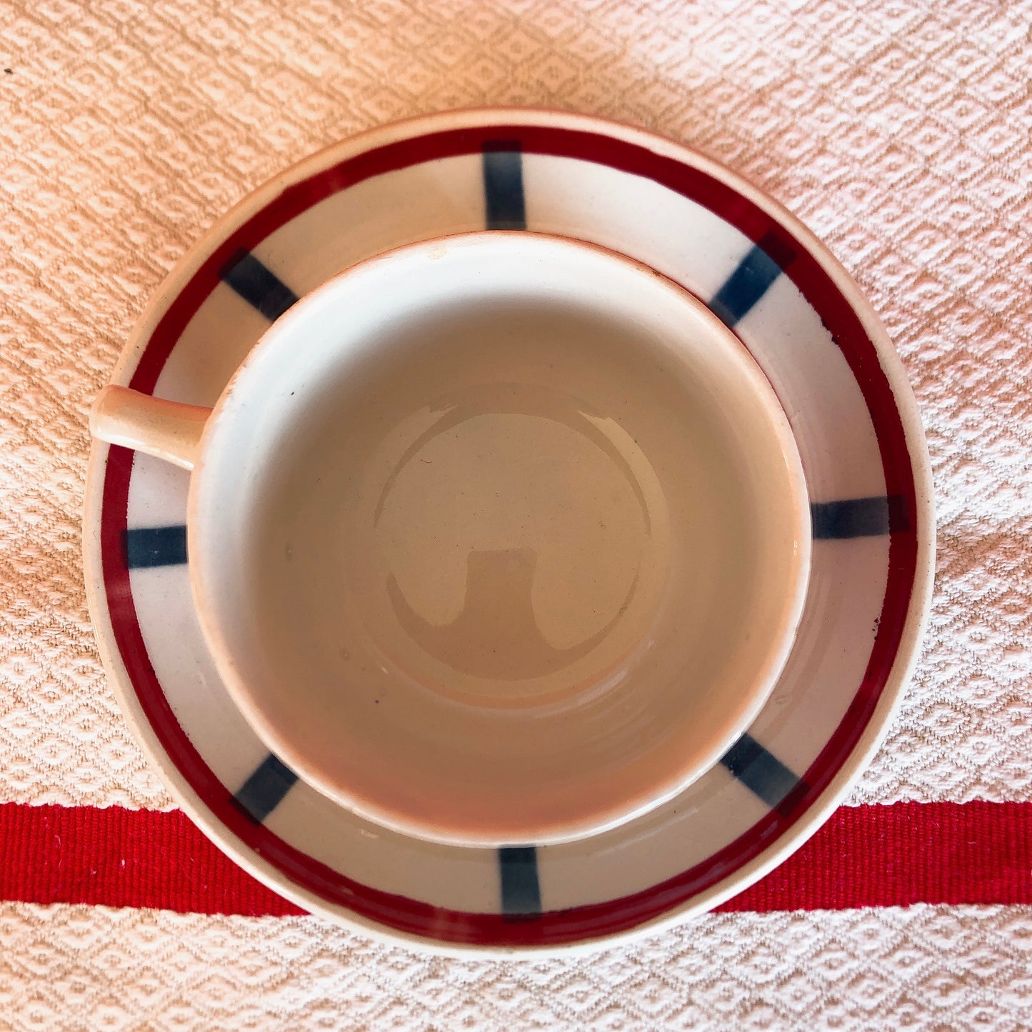 バドンヴィレー カップアンドソーサー バスク柄 『ルージュ・ブルー』A フランスアンティーク食器 バスク柄アンティーク 蚤の市