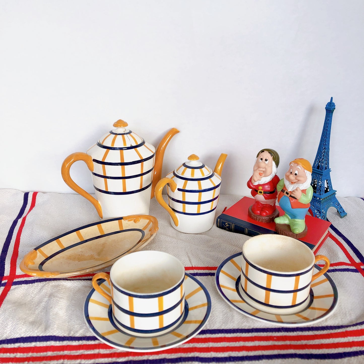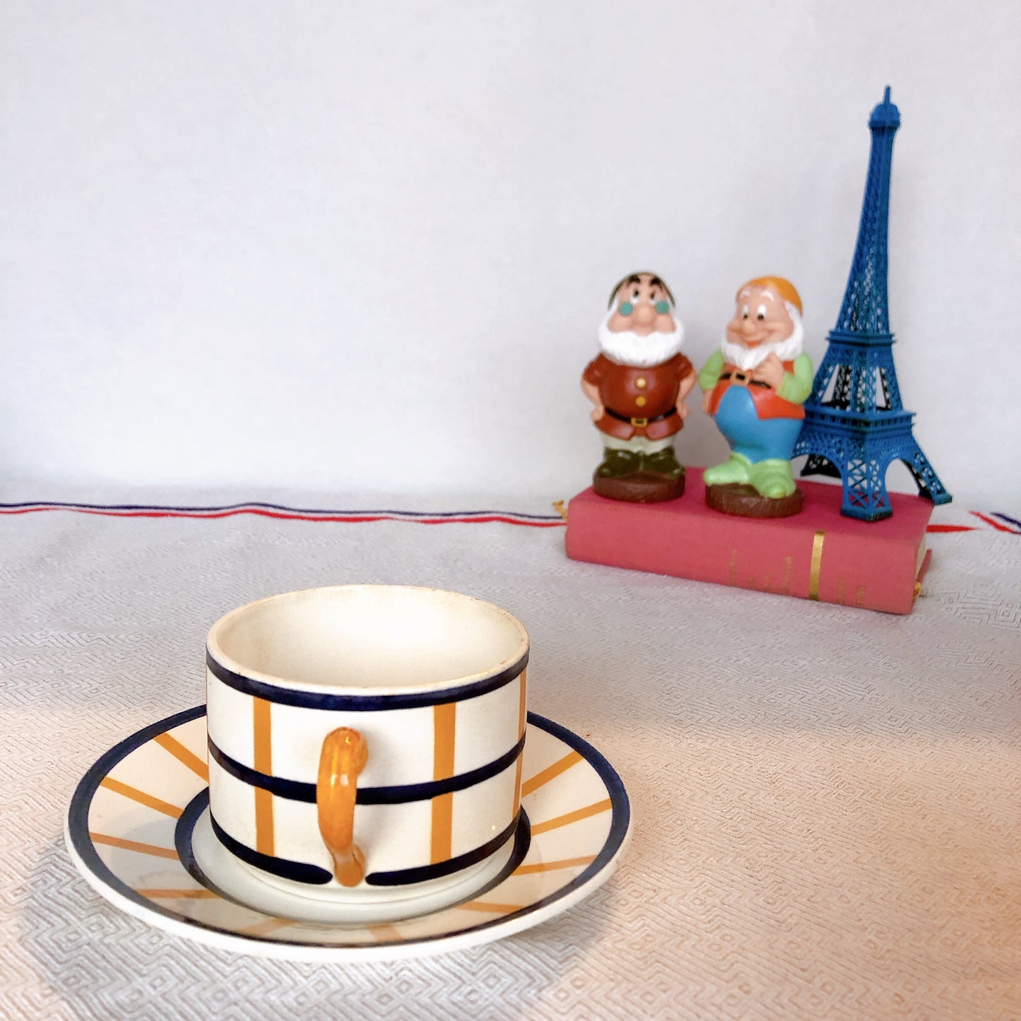 クレイユモントロー HBCM Béarn バスク柄カップ&ソーサー「イエローxブルー」 B フランスアンティーク食器 ブロカント バスク柄アンティーク