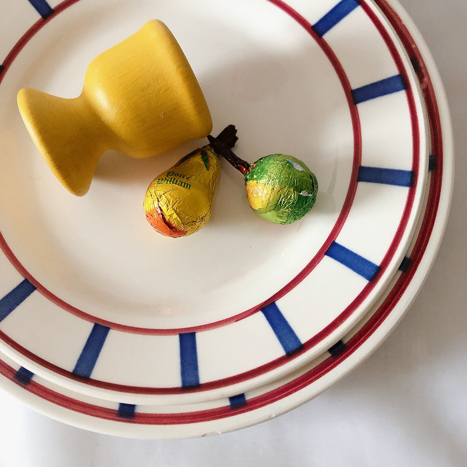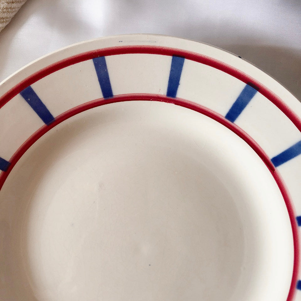 ディゴワンサルグミンヌ 『BASQUE』バスク柄 ディナープレート・平皿『レッド・ブルー』b フランスアンティーク食器 フランス蚤の市・ブロカントアンティーク バスク柄ディナープレート