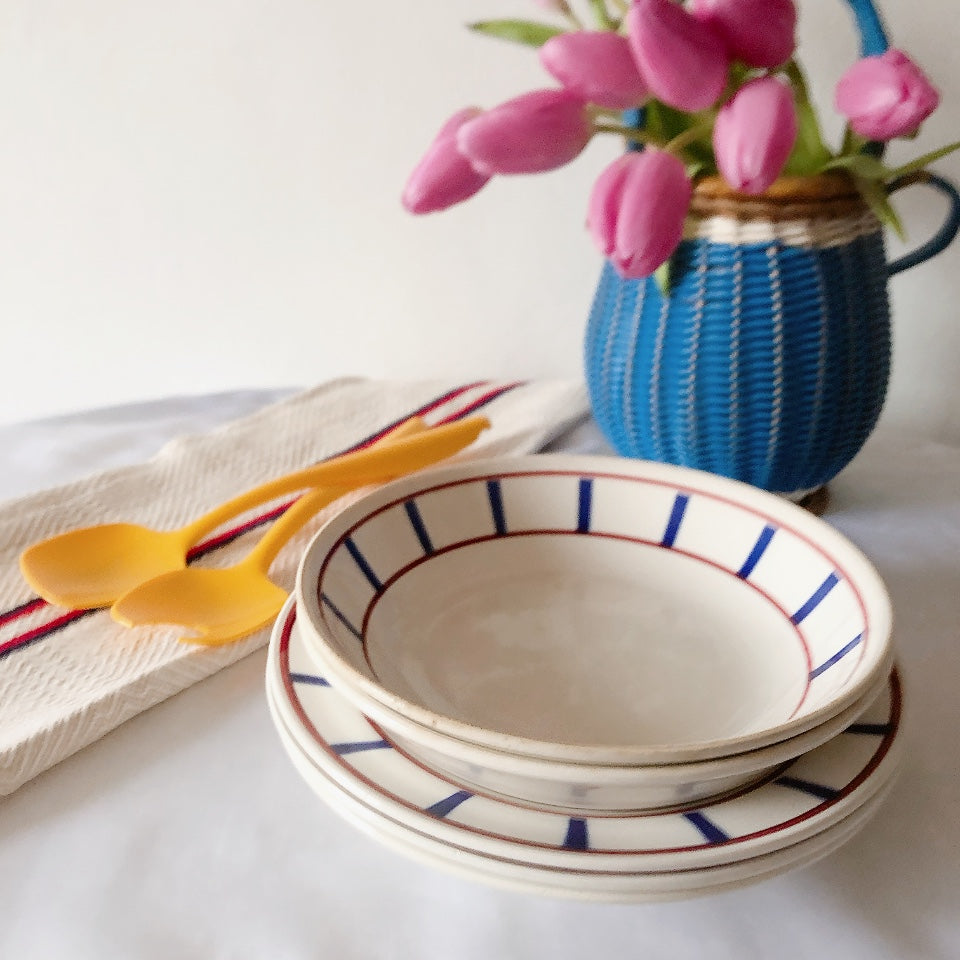 大人気のバスク柄、ルージュ・マリンカラー 赤x青です。少し深みがあるのでソース料理にもご使用可能です。
