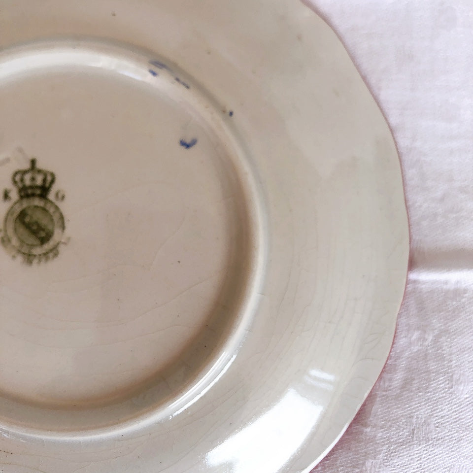 アンティーク品としては良好なコンディションです。G:赤いラインに若干の剥がれ、ごくわずかな傷。全体的に大変綺麗な状態です。H:赤いラインに若干の剥がれ、ごくわずかな傷。裏側の縁に一か所チップがありますが上からは見えません。I:貫入がみられますがチップもラインもございません。