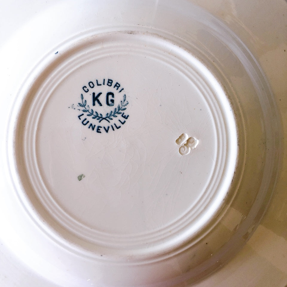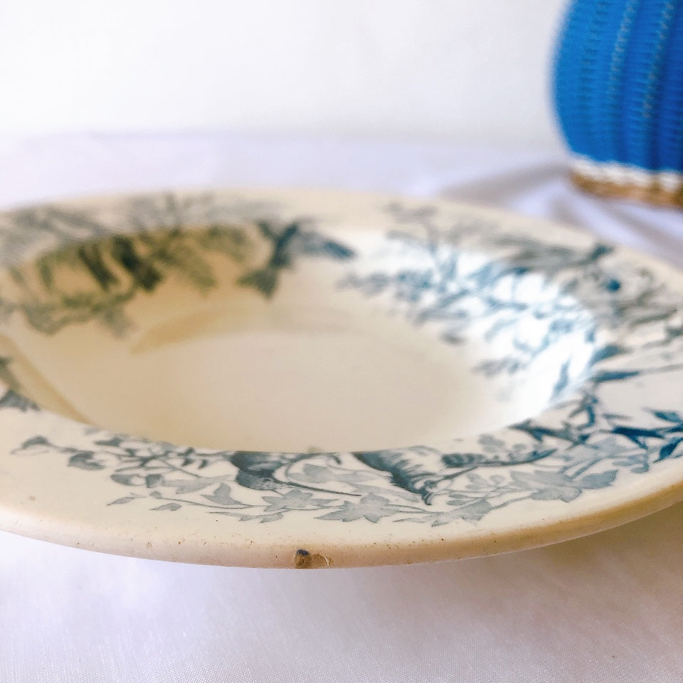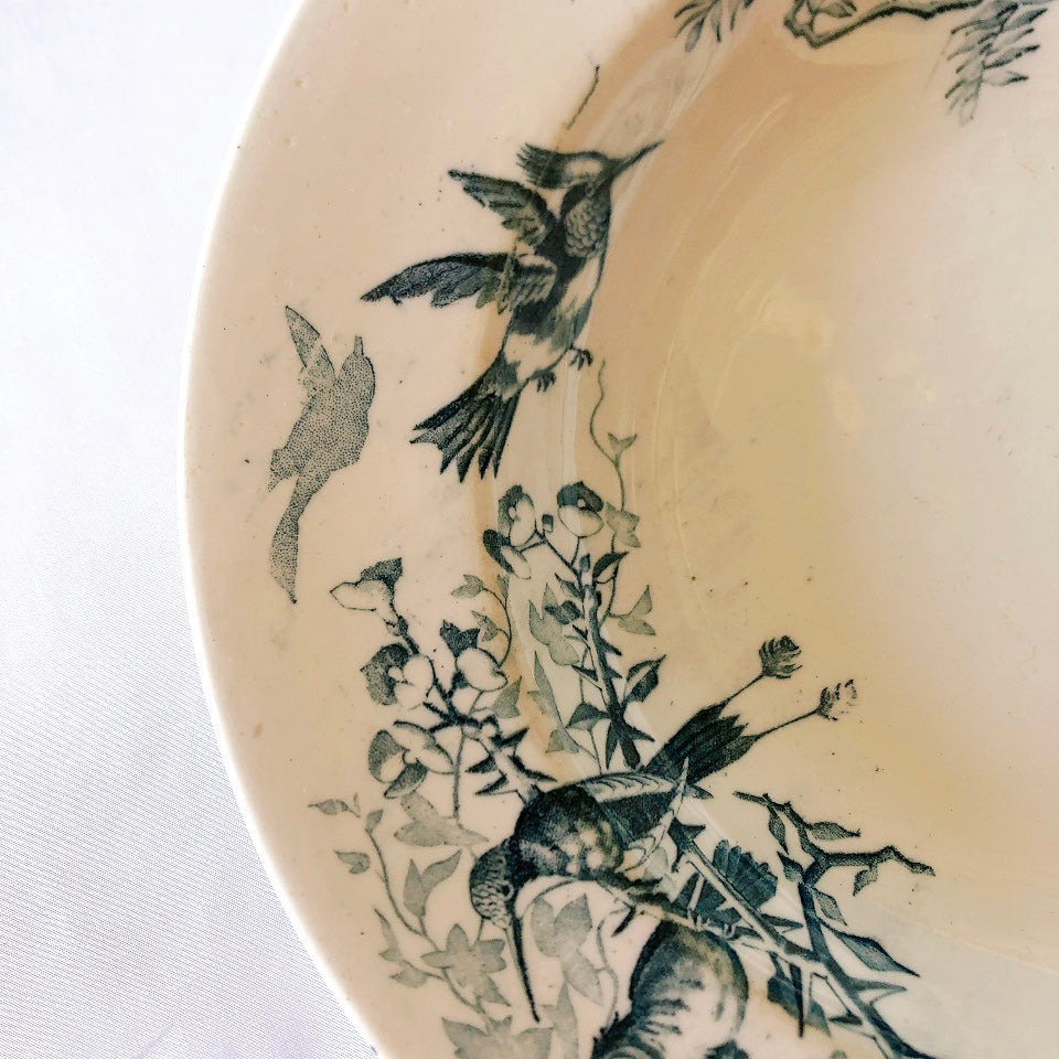 リュネヴィル "COLIBRI"シリーズ 鳥柄 クルーズプレート 深皿 フランスアンティーク食器 蚤の市 ブロカントアンティーク