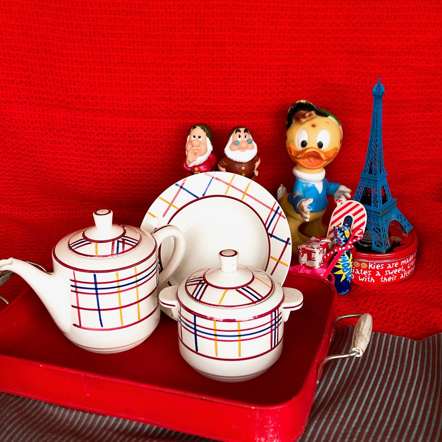 フランス GIEN ジアン 『MALVINA』コーヒーポット&シュガーポット フランスアンティーク食器 ブロカント 蚤の市 アンティークポット