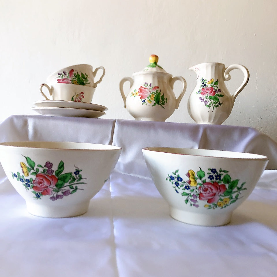 カラフルなお花のブーケが手書きで描かれた、エレガントで大変華やかなこちらの逸品はヨーロッパ内でもコレクターが多く大人気です。